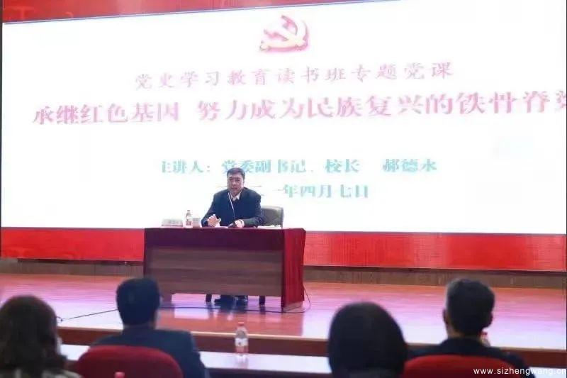 办好党(dang)(dang)(dang)史(shi)学(xue)(xue)(xue)(xue)习教育读(du)书(shu)班(ban),常(chang)委(wei)(wei)班(ban)子带头学(xue)(xue)(xue)(xue)。举办党(dang)(dang)(dang)委(wei)(wei)常(chang)委(wei)(wei)读(du)书(shu)班(ban),坚持(chi)读(du)原(yuan)著、学(xue)(xue)(xue)(xue)原(yuan)文、悟原(yuan)理,党(dang)(dang)(dang)委(wei)(wei)常(chang)委(wei)(wei)先学(xue)(xue)(xue)(xue)一步、学(xue)(xue)(xue)(xue)深一层,以(yi)上率下、示范带动,学(xue)(xue)(xue)(xue)校领导(dao)走上讲台为(wei)学(xue)(xue)(xue)(xue)生(sheng)讲授(shou)党(dang)(dang)(dang)史(shi)学(xue)(xue)(xue)(xue)习教育专题(ti)党(dang)(dang)(dang)课(ke),引(yin)导(dao)广(guang)大(da)党(dang)(dang)(dang)员(yuan)(yuan)知(zhi)史(shi)爱党(dang)(dang)(dang)、知(zhi)史(shi)爱国(guo)。4月(yue)1日(ri),学(xue)(xue)(xue)(xue)校党(dang)(dang)(dang)委(wei)(wei)书(shu)记贾玉(yu)明结合自身学(xue)(xue)(xue)(xue)习体会和学(xue)(xue)(xue)(xue)校青年学(xue)(xue)(xue)(xue)生(sheng)实际(ji),围(wei)绕党(dang)(dang)(dang)史(shi)学(xue)(xue)(xue)(xue)习“为(wei)什(shen)么(me)学(xue)(xue)(xue)(xue)”“学(xue)(xue)(xue)(xue)什(shen)么(me)”以(yi)及“怎样学(xue)(xue)(xue)(xue)”三个方面作了系统(tong)阐释,为(wei)青年学(xue)(xue)(xue)(xue)生(sheng)上了一堂精彩(cai)生(sheng)动的专题(ti)党(dang)(dang)(dang)课(ke)。4月(yue)7日(ri),党(dang)(dang)(dang)委(wei)(wei)副(fu)书(shu)记、校长郝(hao)德(de)永围(wei)绕承继红(hong)色(se)基因为(wei)党(dang)(dang)(dang)员(yuan)(yuan)师生(sheng)讲授(shou)专题(ti)党(dang)(dang)(dang)课(ke),引(yin)导(dao)广(guang)大(da)师生(sheng)赓续共产党(dang)(dang)(dang)人的红(hong)色(se)血脉,努(nu)力成为(wei)担当(dang)民族复兴大(da)任(ren)的铁骨脊梁。