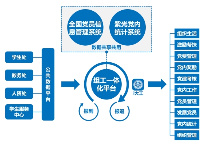 学校(xiao)(xiao)(xiao)党(dang)(dang)委始终高(gao)(gao)(gao)度(du)重视党(dang)(dang)建(jian)(jian)(jian)(jian)信息化建(jian)(jian)(jian)(jian)设(she)(she)(she),由党(dang)(dang)委组(zu)织(zhi)部牵头,在(zai)网信中心(xin)、人力资源处(chu)、学生处(chu)、教(jiao)务处(chu)、财务处(chu)、学生服(fu)务中心(xin)等部门(men)的(de)(de)大(da)力支持下,先后历时5年,经过“调研——分析——设(she)(she)(she)计(ji)——论证——建(jian)(jian)(jian)(jian)设(she)(she)(she)——试行(xing)——启用”七个(ge)(ge)阶(jie)段(duan),分两(liang)期建(jian)(jian)(jian)(jian)成党(dang)(dang)建(jian)(jian)(jian)(jian)工(gong)(gong)作管理综合(he)性平台(tai)。平台(tai)运用“互(hu)联网+”思维(wei)、云计(ji)算和大(da)数(shu)(shu)(shu)据(ju)技术,提供全域数(shu)(shu)(shu)据(ju)采集(ji)、数(shu)(shu)(shu)据(ju)互(hu)联共享、数(shu)(shu)(shu)据(ju)质量(liang)管控、AI数(shu)(shu)(shu)据(ju)建(jian)(jian)(jian)(jian)模(mo)、大(da)数(shu)(shu)(shu)据(ju)管理平台(tai)等服(fu)务。结合(he)学校(xiao)(xiao)(xiao)基层(ceng)(ceng)党(dang)(dang)建(jian)(jian)(jian)(jian)工(gong)(gong)作实(shi)际,个(ge)(ge)性化设(she)(she)(she)计(ji)了组(zu)织(zhi)生活、激励(li)帮扶、党(dang)(dang)费管理、党(dang)(dang)内奖励(li)、党(dang)(dang)建(jian)(jian)(jian)(jian)考核、党(dang)(dang)内工(gong)(gong)作、党(dang)(dang)员(yuan)管理、发(fa)展党(dang)(dang)员(yuan)、党(dang)(dang)内统(tong)计(ji)和组(zu)织(zhi)管理等10个(ge)(ge)模(mo)块,集(ji)党(dang)(dang)组(zu)织(zhi)建(jian)(jian)(jian)(jian)设(she)(she)(she)和党(dang)(dang)员(yuan)队伍建(jian)(jian)(jian)(jian)设(she)(she)(she)为一体,覆(fu)盖基层(ceng)(ceng)党(dang)(dang)建(jian)(jian)(jian)(jian)工(gong)(gong)作内涵,基本实(shi)现学校(xiao)(xiao)(xiao)基层(ceng)(ceng)党(dang)(dang)建(jian)(jian)(jian)(jian)工(gong)(gong)作“一网通办”,大(da)幅缩(suo)减了基层(ceng)(ceng)党(dang)(dang)组(zu)织(zhi)填表(biao)报数(shu)(shu)(shu)、统(tong)计(ji)报表(biao)等的(de)(de)工(gong)(gong)作量(liang),构建(jian)(jian)(jian)(jian)了具(ju)有(you)大(da)工(gong)(gong)特色的(de)(de)高(gao)(gao)(gao)校(xiao)(xiao)(xiao)基层(ceng)(ceng)党(dang)(dang)建(jian)(jian)(jian)(jian)“智慧模(mo)式”,走在(zai)了全国高(gao)(gao)(gao)校(xiao)(xiao)(xiao)前列。