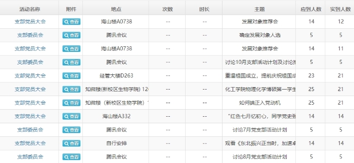 组织生活(huo)(huo)管理(li)服务量化(hua),明确“月——季——年”“三(san)会(hui)(hui)一课”主题党日(ri)等组织生活(huo)(huo)达标标准,每月发放重点任务清(qing)单,实现(xian)基层党支部(bu)组织生活(huo)(huo)“会(hui)(hui)议(yi)通(tong)知——参(can)会(hui)(hui)统(tong)计(ji)——会(hui)(hui)议(yi)记录(lu)”等功(gong)能(neng),做到(dao)党支部(bu)组织生活(huo)(huo)提(ti)醒、全过程(cheng)智(zhi)能(neng)电子记录(lu)存档、达标情况预警、动态分类统(tong)计(ji)等,为基层党务工作者(zhe)提(ti)供短信(xin)通(tong)知、会(hui)(hui)议(yi)数(shu)据(ju)自动提(ti)取记录(lu)、参(can)会(hui)(hui)人员统(tong)计(ji)等智(zhi)能(neng)服务,省事省时(shi)省力(li),留出(chu)更多的时(shi)间和精力(li)投入到(dao)教学(xue)科研(yan)、工作学(xue)习。