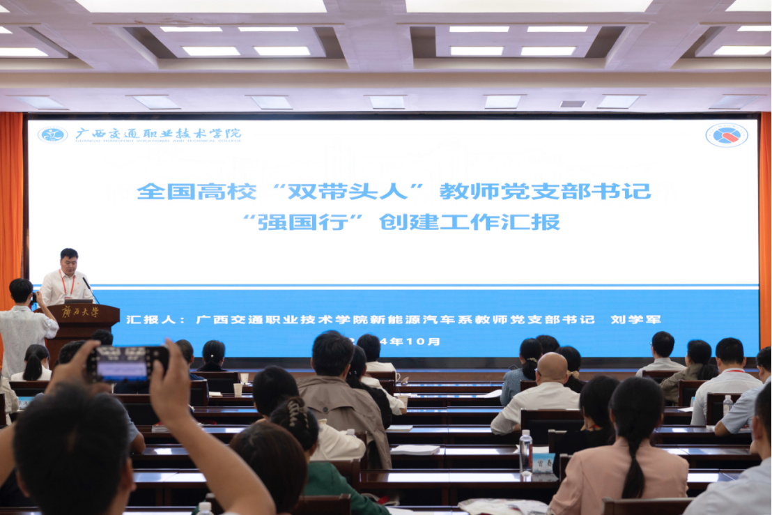 广(guang)西交通职业技(ji)术学院汽车(che)工(gong)程学院新能源(yuan)汽车(che)系教(jiao)师(shi)党支部围绕推(tui)动(dong)“砺志、砺质(zhi)、砺智”以及头(tou)雁领(ling)航(hang),群(qun)雁助航(hang)等五项行动(dong)建功教(jiao)育、赋能科创为(wei)主题作经验分享。