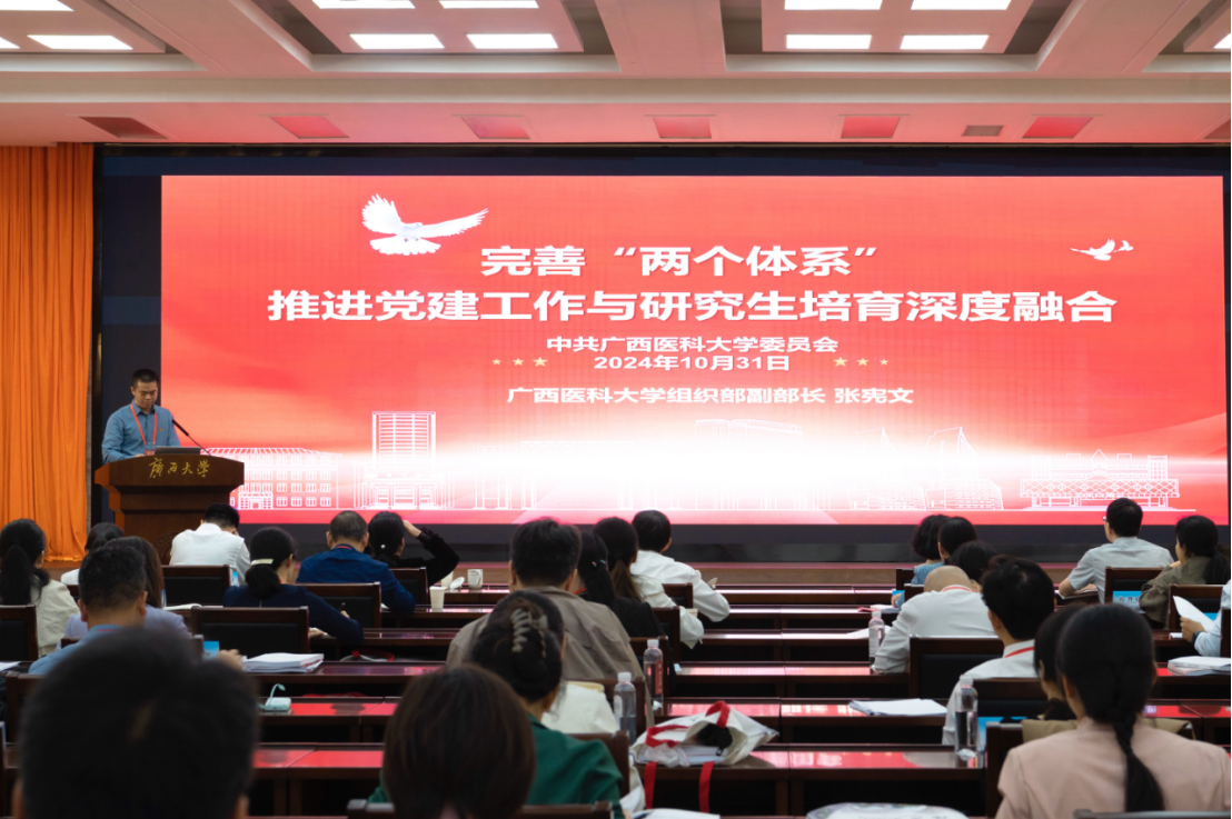 广西(xi)医科大学(xue)以“完善‘两个体系(xi)’,推进(jin)党建工(gong)作(zuo)与研究(jiu)生培育(yu)深度融(rong)合”为(wei)主题作(zuo)研究(jiu)生党建工(gong)作(zuo)经验(yan)分享。