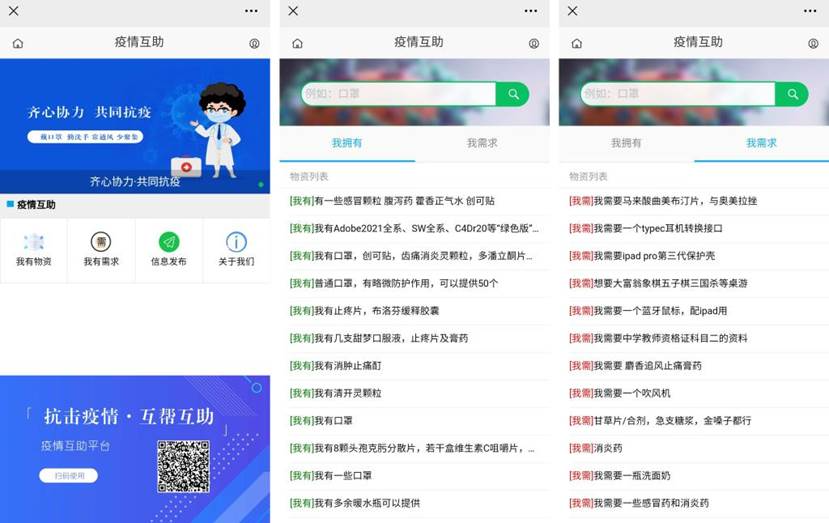 线(xian)(xian)上(shang)(shang)搭建(jian)(jian)“解(jie)茫(mang)(mang)(mang)盒(he)”云(yun)(yun)(yun)(yun)平(ping)台(tai)(tai),结(jie)合学(xue)生(sheng)(sheng)群体中“无(wu)人(ren)(ren)不(bu)网(wang)(wang),无(wu)处不(bu)网(wang)(wang),无(wu)时(shi)(shi)(shi)(shi)不(bu)网(wang)(wang)”的新(xin)形势,充分利(li)用互联(lian)网(wang)(wang)服务(wu)功(gong)(gong)能,线(xian)(xian)上(shang)(shang)搭建(jian)(jian)“解(jie)茫(mang)(mang)(mang)盒(he)”云(yun)(yun)(yun)(yun)服务(wu)平(ping)台(tai)(tai)。该(gai)平(ping)台(tai)(tai)设(she)(she)置(zhi)“茫(mang)(mang)(mang)盒(he)仓库(ku)、发(fa)(fa)起(qi)茫(mang)(mang)(mang)盒(he)、我(wo)的茫(mang)(mang)(mang)盒(he)、投诉建(jian)(jian)议(yi)”四(si)个(ge)(ge)模块(kuai),“茫(mang)(mang)(mang)盒(he)仓库(ku)”即(ji)为(wei)所有(you)学(xue)生(sheng)(sheng)的提(ti)问与(yu)(yu)解(jie)答(da)数据库(ku),同(tong)时(shi)(shi)(shi)(shi)具(ju)备(bei)关(guan)键词(ci)搜索功(gong)(gong)能;“发(fa)(fa)起(qi)茫(mang)(mang)(mang)盒(he)”即(ji)为(wei)学(xue)生(sheng)(sheng)的提(ti)问窗(chuang)口(kou),学(xue)生(sheng)(sheng)可在(zai)此模块(kuai)提(ti)出(chu)(chu)自己的疑(yi)惑;“我(wo)的茫(mang)(mang)(mang)盒(he)”即(ji)为(wei)学(xue)生(sheng)(sheng)查看回复的窗(chuang)口(kou);同(tong)时(shi)(shi)(shi)(shi),设(she)(she)计平(ping)台(tai)(tai)二维码张贴于学(xue)院341个(ge)(ge)学(xue)生(sheng)(sheng)宿舍,方(fang)便(bian)学(xue)生(sheng)(sheng)扫码进入云(yun)(yun)(yun)(yun)平(ping)台(tai)(tai),随时(shi)(shi)(shi)(shi)提(ti)出(chu)(chu)困(kun)惑、表达(da)诉求(qiu)和(he)征集意(yi)见。此外,平(ping)台(tai)(tai)设(she)(she)置(zhi)“公示(shi)”栏(lan),及(ji)时(shi)(shi)(shi)(shi)发(fa)(fa)布(bu)(bu)各项学(xue)生(sheng)(sheng)工作(zuo)的通(tong)知公示(shi),例(li)如:奖学(xue)金申请通(tong)知、证书(shu)领(ling)取(qu)通(tong)知等(deng)。“解(jie)茫(mang)(mang)(mang)盒(he)”云(yun)(yun)(yun)(yun)平(ping)台(tai)(tai)拉近(jin)了学(xue)院与(yu)(yu)学(xue)生(sheng)(sheng)、教(jiao)师(shi)(shi)与(yu)(yu)学(xue)生(sheng)(sheng)的距离,为(wei)做(zuo)好思想引领(ling)和(he)教(jiao)育管(guan)理提(ti)供有(you)效保障。在(zai)疫情防(fang)控期间(jian),学(xue)生(sheng)(sheng)面(mian)临一系列新(xin)的实际问题(ti)和(he)困(kun)难,例(li)如快递无(wu)法及(ji)时(shi)(shi)(shi)(shi)送(song)达(da)、人(ren)(ren)员不(bu)能随意(yi)外出(chu)(chu)、个(ge)(ge)人(ren)(ren)物资(zi)储(chu)备(bei)不(bu)够充分等(deng)。基于此类问题(ti),“解(jie)茫(mang)(mang)(mang)盒(he)”云(yun)(yun)(yun)(yun)平(ping)台(tai)(tai)及(ji)时(shi)(shi)(shi)(shi)拓展系统,开发(fa)(fa)疫情互助(zhu)(zhu)功(gong)(gong)能,设(she)(she)置(zhi)“我(wo)有(you)物资(zi)”“我(wo)有(you)需求(qiu)”“信息(xi)发(fa)(fa)布(bu)(bu)”等(deng)多个(ge)(ge)模块(kuai),在(zai)校师(shi)(shi)生(sheng)(sheng)不(bu)仅(jin)可以发(fa)(fa)布(bu)(bu)物资(zi)需求(qiu)寻得帮(bang)助(zhu)(zhu),还可以将个(ge)(ge)人(ren)(ren)闲置(zhi)物资(zi)信息(xi)发(fa)(fa)布(bu)(bu)到(dao)平(ping)台(tai)(tai)上(shang)(shang),在(zai)求(qiu)助(zhu)(zhu)者与(yu)(yu)助(zhu)(zhu)人(ren)(ren)者之(zhi)间(jian)架起(qi)一座桥,助(zhu)(zhu)力师(shi)(shi)生(sheng)(sheng)守望相助(zhu)(zhu)、共克时(shi)(shi)(shi)(shi)艰。