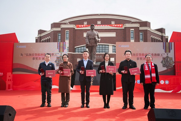 “雷(lei)(lei)锋(feng)叔叔,我们(men)想成为(wei)你;雷(lei)(lei)锋(feng)精神,我们(men)想赓续(xu)你……”3月(yue)3日下午,一(yi)(yi)首由临(lin)港(gang)新(xin)片区大中小学(xue)生(sheng)(sheng)代(dai)表(biao)(biao)共同(tong)献唱(chang)的(de)(de)(de)“大思(si)政合(he)唱(chang)曲”,在(zai)上海(hai)(hai)建(jian)桥(qiao)学(xue)院雷(lei)(lei)锋(feng)广场的(de)(de)(de)上空飘荡(dang),纪念毛(mao)泽东等老(lao)一(yi)(yi)辈革命(ming)家为(wei)雷(lei)(lei)锋(feng)同(tong)志题词(ci)六十周年(nian)主题活(huo)动在(zai)此举(ju)行。来自上海(hai)(hai)建(jian)桥(qiao)学(xue)院、上海(hai)(hai)海(hai)(hai)洋大学(xue)、上海(hai)(hai)中学(xue)东校、临(lin)港(gang)实(shi)验中学(xue)、临(lin)港(gang)第一(yi)(yi)中学(xue)、建(jian)平临(lin)港(gang)小学(xue)、明珠临(lin)港(gang)小学(xue)、上海(hai)(hai)师(shi)范大学(xue)附属浦东临(lin)港(gang)中(小)学(xue)等9校的(de)(de)(de)师(shi)生(sheng)(sheng)代(dai)表(biao)(biao)齐聚一(yi)(yi)起,同(tong)上一(yi)(yi)堂雷(lei)(lei)锋(feng)课(ke),通过对雷(lei)(lei)锋(feng)精神多层(ceng)次解读(du)、多样化实(shi)践,当好雷(lei)(lei)锋(feng)传人(ren),让(rang)雷(lei)(lei)锋(feng)精神在(zai)新(xin)时代(dai)绽放更加璀璨的(de)(de)(de)光芒。