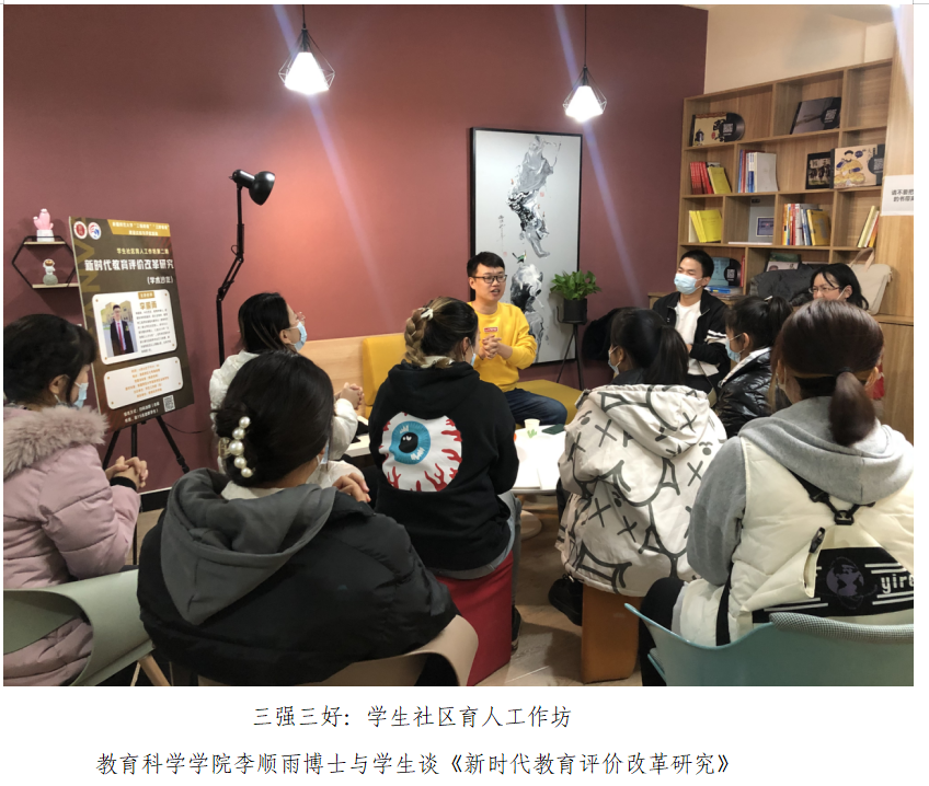 推进育人活动进社区,开创育人体系“新局面”。“三进两联一交友”通过开展“五个一”等活动,不断促进各族师生的深度融合,铸牢中华民族共同体意识。育人工作坊由校院领导、教授、学科带头人等专家担任育人导师进驻学生社区为学生提供思想引领、科技创新、学术研究、职业规划、学业指导、就业引导、心理辅导、文化体验类服务,已开展58期63场次。