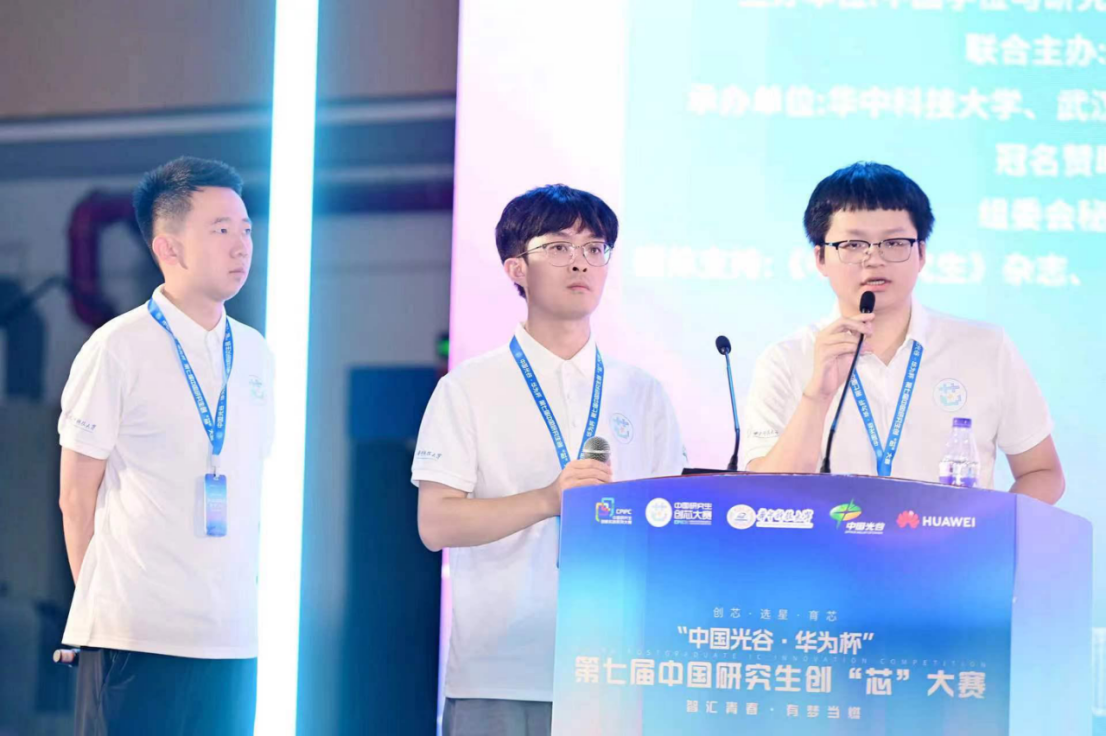 精深科研,以赛促学强技能;彰显才智,以学促用砺精兵。为填补大语言模型加速器在应用领域的相对空白,物理科学与技术学院的孟群康、李展、张智涵三位研究生合力设计了一款专门针对Transformer网络的硬件加速器电路芯片。在长达半年的作品准备和封闭集训过程中,“新芯之火”队在常胜和王豪两位老师的指导下克服重重困难,凭借扎实的基础知识和优秀的临场反应能力在第七届中国研究生创“芯”大赛中过关斩将,最终斩获正赛与企业赛“双料一等奖”。