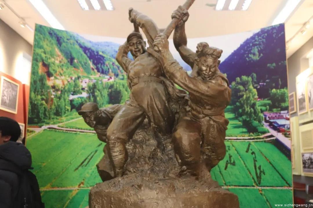 “到(dao)(dao)(dao)处是(shi)庄稼,遍地(di)是(shi)牛羊……再不是(shi)旧模样,是(shi)陕(shan)北的(de)(de)(de)好江南”,一(yi)首唱遍大江南北、脍(kuai)炙人口的(de)(de)(de)《南泥(ni)湾》让我们(men)对今天上午的(de)(de)(de)参(can)观学习充(chong)满期待。迎(ying)着东(dong)升的(de)(de)(de)旭(xu)日,冒着冷冽的(de)(de)(de)晨风,我们(men)一(yi)早(zao)就来(lai)到(dao)(dao)(dao)了(le)(le)南泥(ni)湾。在(zai)此我们(men)了(le)(le)解到(dao)(dao)(dao)抗战进入相持(chi)阶段后,革命根据(ju)地(di)受(shou)到(dao)(dao)(dao)日本(ben)侵略者(zhe)和(he)国(guo)(guo)民党(dang)反动(dong)派(pai)的(de)(de)(de)重重封(feng)锁,面临外患内困,党(dang)中央发出了(le)(le)“自己动(dong)手(shou),丰(feng)衣足(zu)食”的(de)(de)(de)号召。1941年春(chun),八路军三五九(jiu)旅(lv)在(zai)旅(lv)长王(wang)震(zhen)的(de)(de)(de)率领下来(lai)到(dao)(dao)(dao)南泥(ni)湾军垦屯田,筚路蓝缕、披荆斩棘(ji),短短三年,将原(yuan)来(lai)荒无人烟的(de)(de)(de)烂(lan)泥(ni)湾变成了(le)(le)“粮食堆满仓,稻谷(gu)翻金浪,猪牛羊肥壮,鱼鸭满池塘”的(de)(de)(de)陕(shan)北江南,谱(pu)写了(le)(le)一(yi)部用汗水和(he)热(re)血(xue)凝成的(de)(de)(de)革命史诗。南泥(ni)湾精神从此成为延(yan)安精神的(de)(de)(de)重要组成部分,其自力更(geng)生、艰苦奋斗(dou)、勇(yong)于创新、革命乐(le)观主义等精神特质(zhi)也成为后来(lai)新中国(guo)(guo)生产(chan)建设、经济腾飞的(de)(de)(de)巨(ju)大动(dong)力!