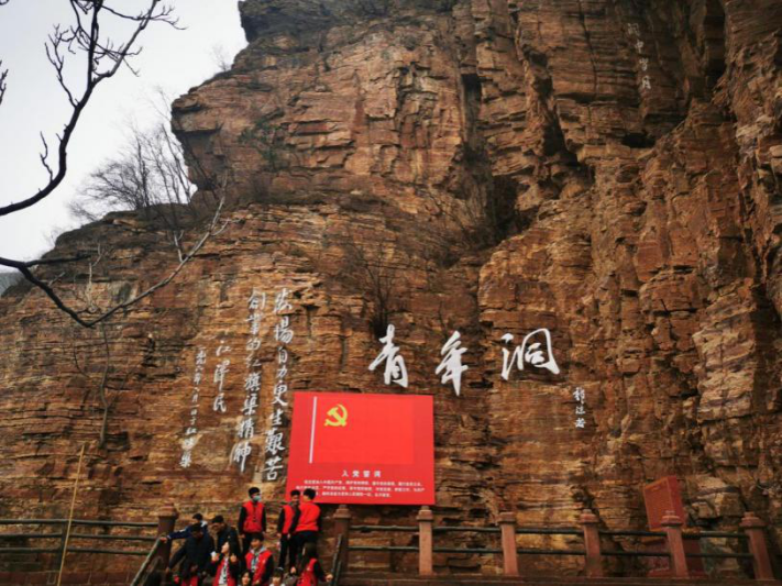 青年洞总长(zhang)616米,高5米,宽6.2米,处(chu)于(yu)豫、冀、晋三省交界处(chu),修筑在太行山腰的(de)(de)峭壁之上,因(yin)参(can)加凿洞的(de)(de)突击(ji)队是(shi)从全县民工中抽调出来的(de)(de)300名优(you)秀青年而得名。走在紧贴着山崖凌空而建的(de)(de)栈道上,看着穿(chuan)山而过的(de)(de)红旗渠水,学生们深刻感受到了“愚(yu)公奋起十春秋,引来漳河润田禾”的(de)(de)艰(jian)辛和(he)不易,更深刻的(de)(de)体会(hui)到了林县人(ren)民不畏艰(jian)险、艰(jian)苦创业的(de)(de)雄心(xin)壮志。