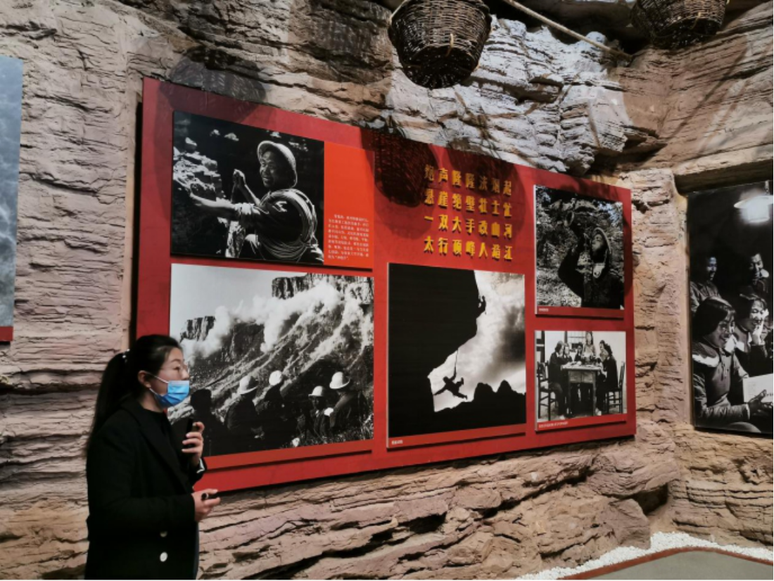 讲(jiang)解(jie)员老师在为同(tong)学(xue)们讲(jiang)解(jie)太行天河的艰辛挖凿过程(cheng)