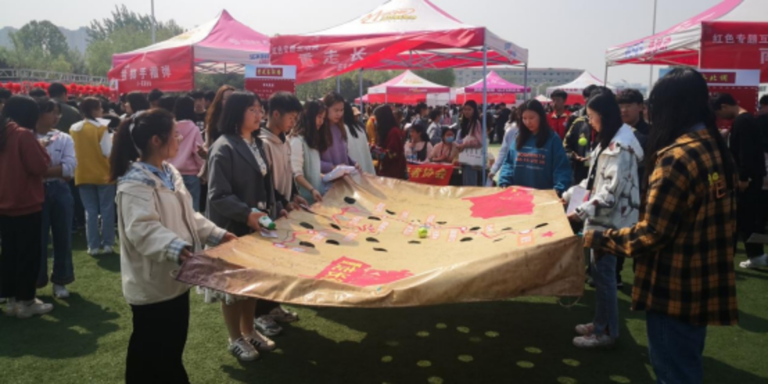 游(you)园(yuan)(yuan)会是本次开幕式(shi)的(de)(de)重要环(huan)节(jie)。在(zai)往(wang)届承办(ban)的(de)(de)基础(chu)上,结(jie)合“学党(dang)(dang)史 强信念(nian) 跟(gen)党(dang)(dang)走”学习教(jiao)育,专门设(she)置了红色专题(ti)互动(dong)类(lei)体(ti)验区(qu),包括“重走长征路”、“红军挑梁小道”、“猜灯谜学党(dang)(dang)史”、“投掷手榴弹(dan)”、“救助伤(shang)员(yuan)”、“南水北调”等项目(mu),将党(dang)(dang)的(de)(de)光辉历(li)程、伟(wei)大精神(shen)巧(qiao)妙融入互动(dong)项目(mu),让同学们(men)在(zai)形式(shi)多样的(de)(de)活(huo)(huo)动(dong)中,学习党(dang)(dang)史知识,体(ti)悟(wu)革命精神(shen),从(cong)而坚(jian)定理(li)想信念(nian),厚植家(jia)国情(qing)怀。除此之(zhi)外,还有休闲益智体(ti)验、传(chuan)统文化推广、教(jiao)育公益实践、活(huo)(huo)力运动(dong)竞技(ji)等四类(lei)共(gong)计(ji)30项活(huo)(huo)动(dong),整个活(huo)(huo)动(dong)设(she)计(ji)与时代热(re)点结(jie)合、兼顾趣味性和可操作性,共(gong)发出游(you)园(yuan)(yuan)卡2万张。各(ge)活(huo)(huo)动(dong)项目(mu)摊位(wei)前人声鼎沸,络绎不绝,工作人员(yuan)有序组(zu)织青年学生参与互动(dong)。