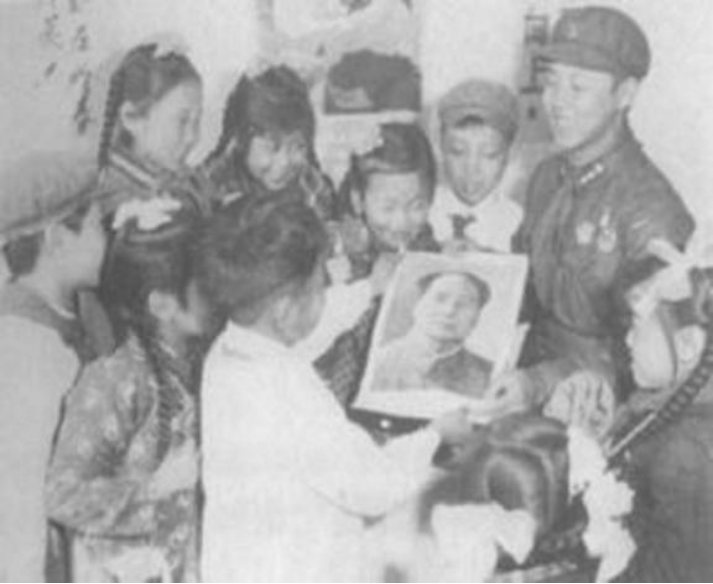 图4向(xiang)孩(hai)子们赠送主席画像的雷锋