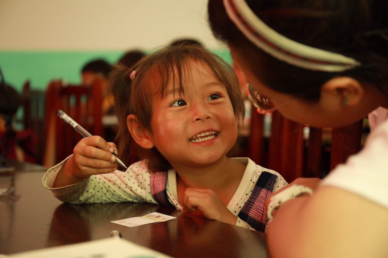 筑梦(meng)团成员(yuan)与留守儿童互动