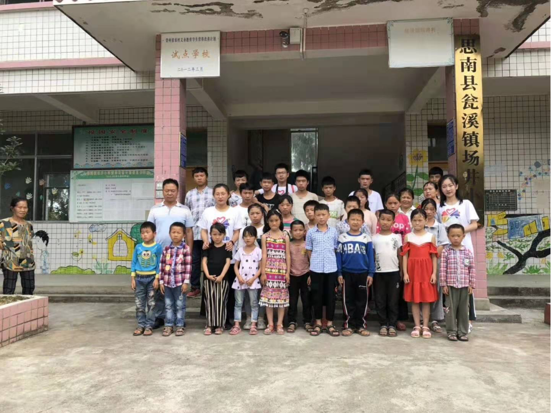 筑梦团(tuan)成员与留守儿童合影