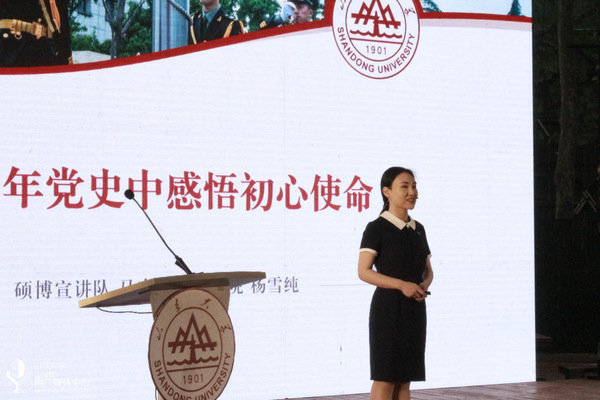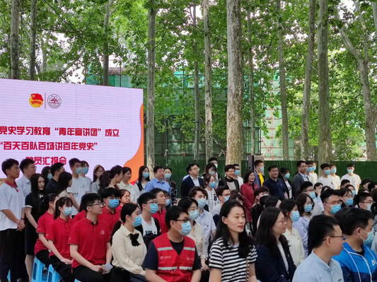 为认真(zhen)学(xue)习(xi)(xi)贯(guan)彻总书(shu)记在(zai)党(dang)(dang)史(shi)(shi)(shi)学(xue)习(xi)(xi)教育动(dong)员大会上的重要讲话精神,把(ba)“四(si)史(shi)(shi)(shi)”学(xue)习(xi)(xi)转化为育人成(cheng)效,将党(dang)(dang)史(shi)(shi)(shi)知(zhi)识融入青(qing)(qing)年(nian)团员教育日(ri)常,引导青(qing)(qing)年(nian)学(xue)生知(zhi)史(shi)(shi)(shi)爱党(dang)(dang)、知(zhi)史(shi)(shi)(shi)爱国,5月13日(ri),山(shan)(shan)东(dong)大学(xue)党(dang)(dang)史(shi)(shi)(shi)学(xue)习(xi)(xi)教育“青(qing)(qing)年(nian)宣讲团”成(cheng)立暨(ji)“百(bai)(bai)天百(bai)(bai)队百(bai)(bai)场讲百(bai)(bai)年(nian)党(dang)(dang)史(shi)(shi)(shi)”动(dong)员汇(hui)报(bao)会在(zai)中心校区小树林举行。山(shan)(shan)东(dong)大学(xue)党(dang)(dang)委(wei)副书(shu)记王(wang)君松,山(shan)(shan)东(dong)大学(xue)党(dang)(dang)委(wei)常委(wei)、宣传部(bu)(教工(gong)部(bu))部(bu)长桑晓(xiao)旻(min)出席会议。会议由山(shan)(shan)东(dong)省(sheng)青(qing)(qing)年(nian)志愿(yuan)服务(wu)先进个人、山(shan)(shan)东(dong)大学(xue)十佳共青(qing)(qing)团员马文啸主持,山(shan)(shan)大青(qing)(qing)年(nian)师生代表参与(yu)活动(dong)。