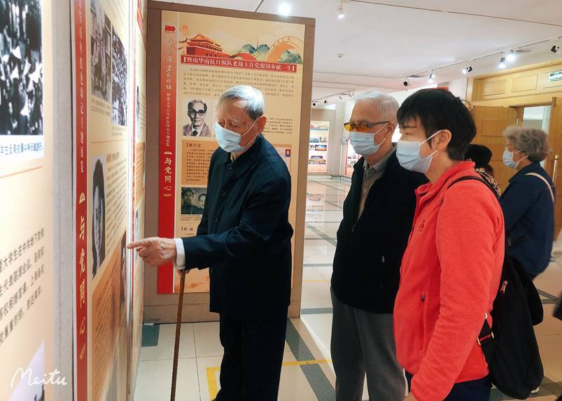11月24日上午十点,暨南大学直属单位第一退休教工党支部书记张嵩山正挥舞着小国旗,带领支部的二十余位退休老党员们来到曾宪梓科学馆参观暨南大学百年红色印记专题展览。作为学校办学发展历史的亲历者和见证者,这些平均年龄接近八十岁的老党员们在讲解员的指引下,在一块块展板前俯身阅读的场景令人动容。一个多月以来,暨南大学百年红色印记专题展览已成为全校师生的热门“打卡”地,每天前来参观学习的人群络绎不绝,将党史学习教育推向新的高潮。