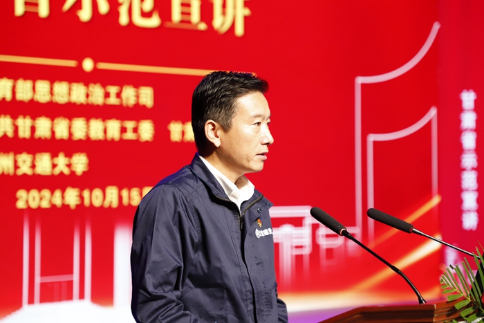 10月15日,由教育部思政司指导,省委教育工委、省教育厅主办,兰州交通大学承办的全国高校“传承红色基因、学思践悟中国共产党人精神谱系”甘肃省示范宣讲活动举行,四名先进人物、党史研究专家、红色场馆负责人、国企骨干代表结合身边的故事,深情讲述了伟大的女排精神、“两弹一星”精神、长征精神、抗震救灾精神和劳模工匠精神。主题宣讲由省委教育工委专职副书记、省教育厅党组成员郑钰主持,兰州交通大学党委书记狄生奎致辞。