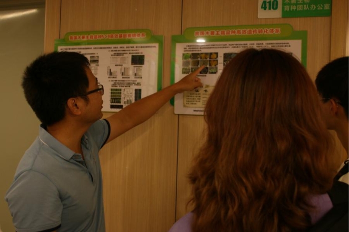 研究员(杨先锋)向团队成员介绍橡胶的组培室 林依摄