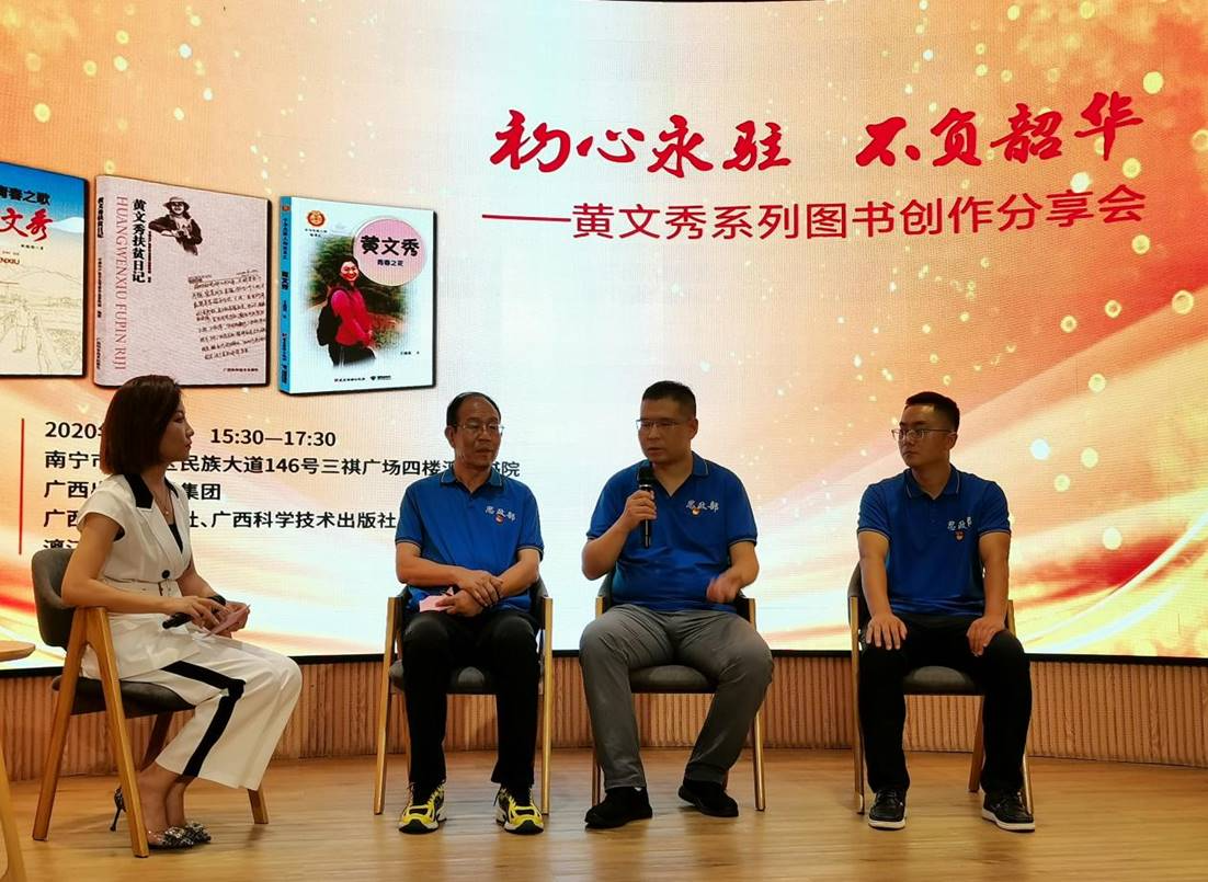 下(xia)午,黄(huang)(huang)(huang)文秀(xiu)(xiu)(xiu)(xiu)社会(hui)实践(jian)团队一行(xing)受邀在(zai)漓江书院(yuan)(yuan)(yuan)参加广西出版传媒集团举(ju)办“初心永(yong)驻 不(bu)负(fu)韶华——黄(huang)(huang)(huang)文秀(xiu)(xiu)(xiu)(xiu)系列图(tu)书创作分(fen)享会(hui)”活(huo)动(dong)(dong)(dong),活(huo)动(dong)(dong)(dong)现场,与会(hui)嘉宾(bin)分(fen)享了《新时代的(de)青(qing)春之歌——黄(huang)(huang)(huang)文秀(xiu)(xiu)(xiu)(xiu)》《黄(huang)(huang)(huang)文秀(xiu)(xiu)(xiu)(xiu)扶贫日记》《黄(huang)(huang)(huang)文秀(xiu)(xiu)(xiu)(xiu)——青(qing)春之花》图(tu)书创作背后的(de)故事,黄(huang)(huang)(huang)文秀(xiu)(xiu)(xiu)(xiu)实践(jian)团队表示(shi)图(tu)书生(sheng)动(dong)(dong)(dong)再现黄(huang)(huang)(huang)文秀(xiu)(xiu)(xiu)(xiu)同(tong)志先进事迹(ji),深(shen)受榜样(yang)鼓舞。在(zai)活(huo)动(dong)(dong)(dong)访谈环节,长治(zhi)学院(yuan)(yuan)(yuan)老(lao)师、文秀(xiu)(xiu)(xiu)(xiu)班的(de)学生(sheng)就黄(huang)(huang)(huang)文秀(xiu)(xiu)(xiu)(xiu)同(tong)志在(zai)长治(zhi)学院(yuan)(yuan)(yuan)、长治(zhi)学院(yuan)(yuan)(yuan)成立“黄(huang)(huang)(huang)文秀(xiu)(xiu)(xiu)(xiu)班”、向(xiang)优秀(xiu)(xiu)(xiu)(xiu)共产党员黄(huang)(huang)(huang)文秀(xiu)(xiu)(xiu)(xiu)学习等进行(xing)分(fen)享。活(huo)动(dong)(dong)(dong)结(jie)束后,与会(hui)人员合影留念。