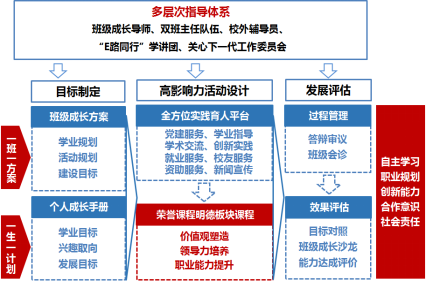 (一) “班级成长工程”,提供班级建设指导个性化方案;荣誉学位“明德板块”课程,提供学生素质提升个性化方案。