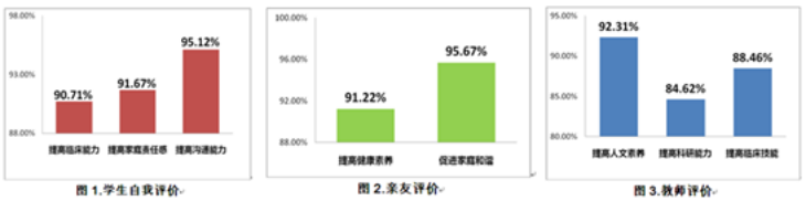 26位教师评价结果显示:92.31%认为学生人文素养提升;84.62%认为科研能力提高,专业知识完善;88.46%认为临床思维训练增多,临床技能提升。
