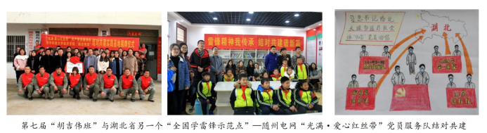 学院建立了“胡吉伟党支部—‘胡吉伟班’—‘胡吉伟班’团支部”的党建工作体系,胡吉伟党支部的党员在“胡吉伟班”和团支部担任主要学生干部,班级、团支部重要活动例如奖学金评选、班委竞选、主题班会、主题团日活动、特色团日活动都有胡吉伟党支部的把关和指导。除此之外,胡吉伟党支部还联合“胡吉伟班”开展思想教育类活动。2019年4月,胡吉伟党支部及第七届“胡吉伟班”的同学们集聚青年园再次深入学习胡吉伟精神,共抒爱国情怀。2020年5月,胡吉伟党支部联合第七届“胡吉伟班”同学共同参与同电子科技大学机械与电气工程学院机械专业本科生第二党支部联合主题党日活动。2021年6月,胡吉伟党支部和“胡吉伟班”的同学一起开展毕业党课汇报,时任党委书记邵新宇同志寄语与会同学“做思想上的模范,言行上的示范,治学上的典范”。2021年11月、2022年6月、2022年12月、2023年6月、2023年12月,校长尤政同志五次参加胡吉伟党支部组织生活,听取胡吉伟党支部党建带班团建设工作汇报,给予高度评价。