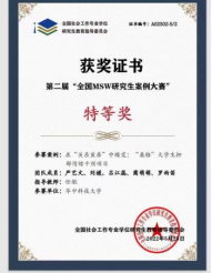 星希望社会工作服务社获得了全国志愿服务项目大赛银奖、全国“创青春”公益创业大赛铜奖、全国社会工作研究生案例大赛一等奖;湖北志愿服务项目大赛金奖、湖北“创青春”公益创业大赛银奖、湖北青年志愿公益项目大赛银奖、湖北社会工作案例大赛二等奖、湖北社会工作实务大赛二等奖和三等奖。桑格团队获得第二届全国MSW研究生案例大赛特等奖。