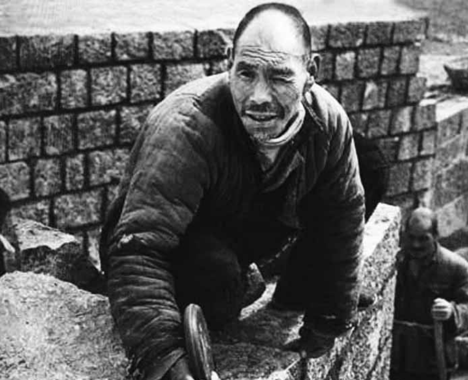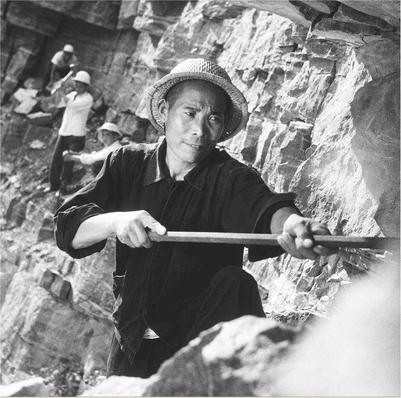 王师存和民工们一起日夜艰苦奋战,硬是一锤锤打,一铲...