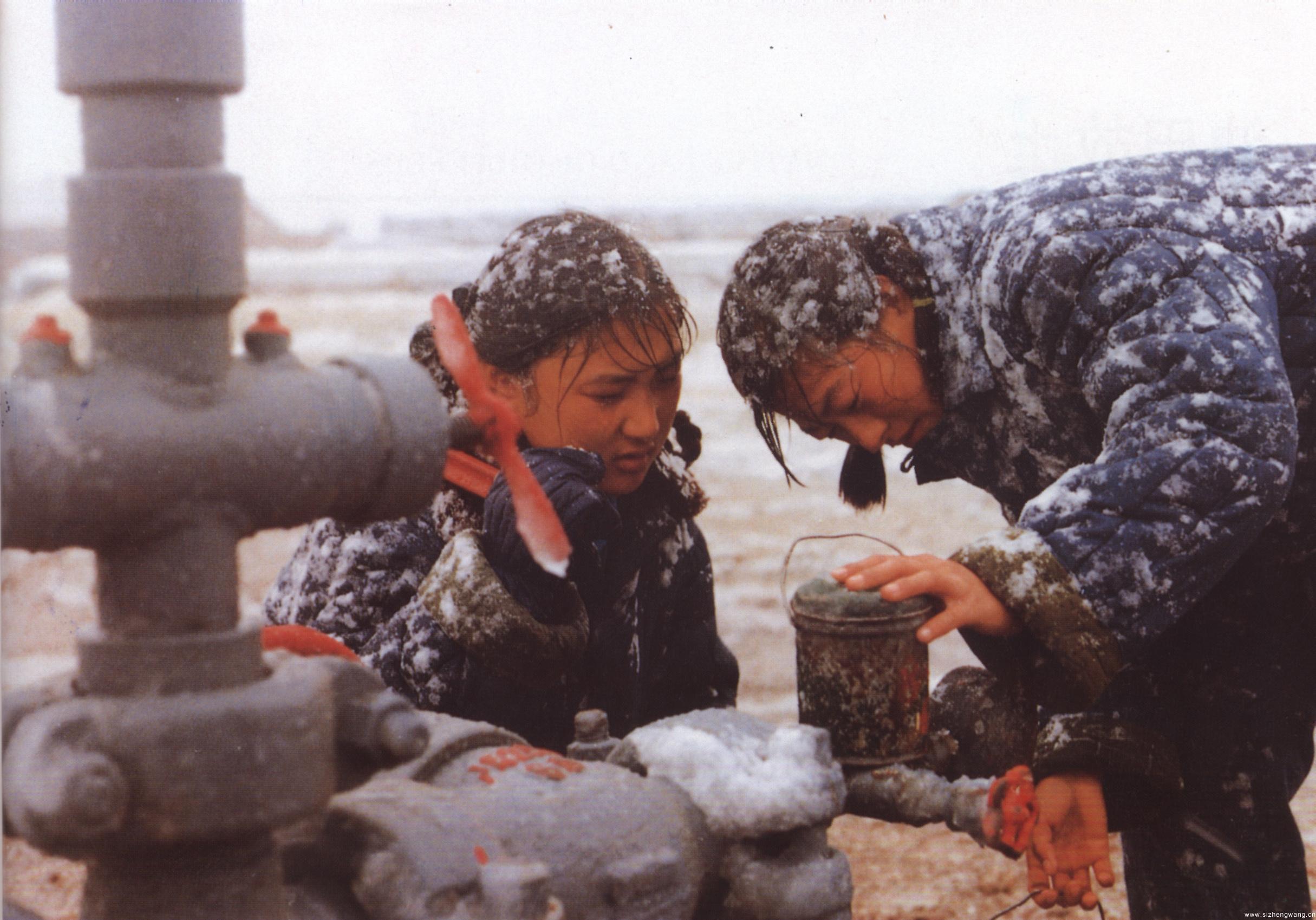 冒雪采集(ji)数据(来(lai)源:大(da)庆油田历史(shi)陈列馆)