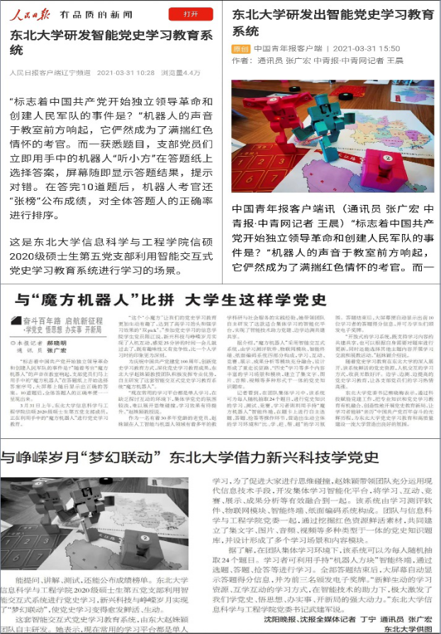 人民日(ri)报(bao)等媒体报(bao)道东北大学智能交互式党(dang)史(shi)学习教育系(xi)统