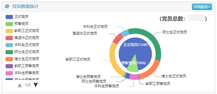 党(dang)(dang)(dang)员(yuan)(yuan)日(ri)常(chang)管理(li)功(gong)能实(shi)(shi)现(xian)了“学校(xiao)——二级(ji)党(dang)(dang)(dang)组(zu)织(zhi)——基(ji)层党(dang)(dang)(dang)支(zhi)部——党(dang)(dang)(dang)员(yuan)(yuan)”“四位一(yi)体”分(fen)级(ji)分(fen)类(lei)管理(li)。通过数据(ju)(ju)采集(ji)与整合、数据(ju)(ju)分(fen)析与挖掘、数据(ju)(ju)可视(shi)化与呈现(xian)以(yi)及(ji)信息交互与共(gong)享(xiang)等技术(shu)手段,实(shi)(shi)现(xian)党(dang)(dang)(dang)员(yuan)(yuan)信息的(de)精(jing)细化管理(li),提(ti)高(gao)对党(dang)(dang)(dang)员(yuan)(yuan)队伍(wu)的(de)全(quan)面分(fen)析了解和服务(wu)水平。实(shi)(shi)现(xian)了党(dang)(dang)(dang)员(yuan)(yuan)组(zu)织(zhi)关系转接、“党(dang)(dang)(dang)员(yuan)(yuan)找组(zu)织(zhi)”、党(dang)(dang)(dang)员(yuan)(yuan)证明信“一(yi)键办(ban)理(li)”,让(rang)基(ji)层党(dang)(dang)(dang)务(wu)工作者提(ti)高(gao)党(dang)(dang)(dang)建工作效率,让(rang)全(quan)体党(dang)(dang)(dang)员(yuan)(yuan)更便捷地参与党(dang)(dang)(dang)的(de)事务(wu),便捷办(ban)理(li)党(dang)(dang)(dang)员(yuan)(yuan)业务(wu)。