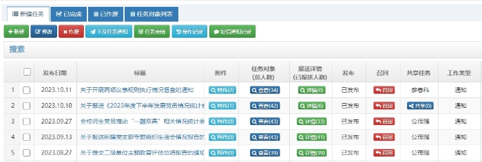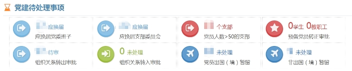 党(dang)(dang)(dang)内工作模(mo)块实(shi)现(xian)了党(dang)(dang)(dang)内工作专用渠道办理,充分考虑了党(dang)(dang)(dang)内部分工作的特殊要求。区分日常办理事项,分类实(shi)时显(xian)示提醒,让党(dang)(dang)(dang)务工作者和(he)党(dang)(dang)(dang)员(yuan)师生一目(mu)了然。模(mo)块嵌入了工作任务收集(ji)提醒和(he)汇总功能,有效(xiao)地提高了工作效(xiao)率。