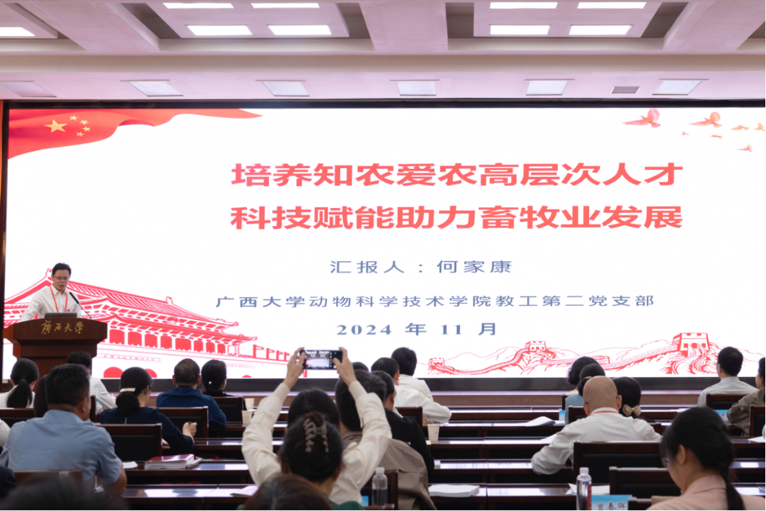 广西大学(xue)动(dong)(dong)物科(ke)学(xue)技术学(xue)院教工第二党(dang)(dang)支部(bu)围绕培养(yang)强(qiang)农爱农兴(xing)农高(gao)素质(zhi)人(ren)才和助力(li)畜牧业(ye)高(gao)质(zhi)量(liang)发展,以(yi)党(dang)(dang)建(jian)联建(jian)为基础,通过“三堂联动(dong)(dong)”拓展教育服务(wu),“五大引擎”推动(dong)(dong)科(ke)技赋能,“四个(ge)举措”深化(hua)实践育人(ren)模式作经(jing)验分享。