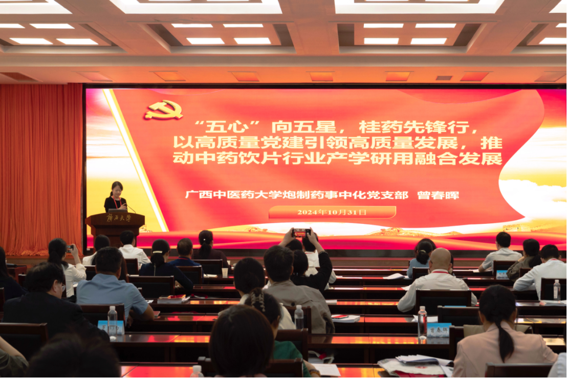 广西中医药(yao)大学炮制药(yao)事中化党支(zhi)部围绕“双带头人”与地方共(gong)建联建以及推动科技(ji)成果转移转化的主题作经(jing)验分享。