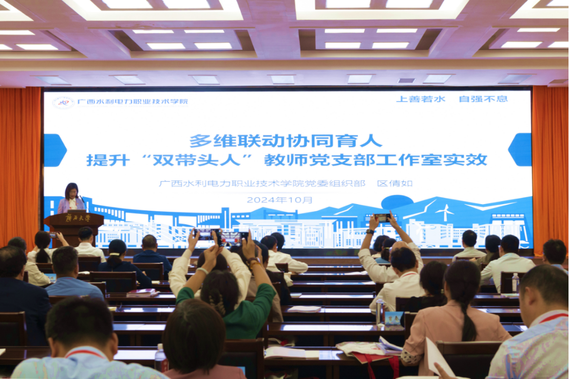 广西水(shui)利电力(li)职(zhi)业技(ji)术学院围绕(rao)发挥“双(shuang)带头人”党支部工作室多(duo)维联动(dong)协同(tong)育人作用为主题作经(jing)验分享。