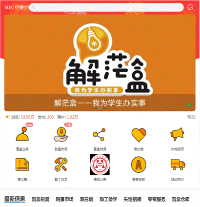 线(xian)(xian)上(shang)(shang)搭建(jian)(jian)“解(jie)茫(mang)(mang)(mang)盒(he)”云(yun)(yun)(yun)(yun)平(ping)台(tai)(tai),结(jie)合学(xue)生(sheng)(sheng)群体中“无(wu)人(ren)(ren)不(bu)网(wang)(wang),无(wu)处不(bu)网(wang)(wang),无(wu)时(shi)(shi)(shi)(shi)不(bu)网(wang)(wang)”的新(xin)形势,充分利(li)用互联(lian)网(wang)(wang)服务(wu)功(gong)(gong)能,线(xian)(xian)上(shang)(shang)搭建(jian)(jian)“解(jie)茫(mang)(mang)(mang)盒(he)”云(yun)(yun)(yun)(yun)服务(wu)平(ping)台(tai)(tai)。该(gai)平(ping)台(tai)(tai)设(she)(she)置(zhi)“茫(mang)(mang)(mang)盒(he)仓库(ku)、发(fa)(fa)起(qi)茫(mang)(mang)(mang)盒(he)、我(wo)的茫(mang)(mang)(mang)盒(he)、投诉建(jian)(jian)议(yi)”四(si)个(ge)(ge)模块(kuai),“茫(mang)(mang)(mang)盒(he)仓库(ku)”即(ji)为(wei)所有(you)学(xue)生(sheng)(sheng)的提(ti)问与(yu)(yu)解(jie)答(da)数据库(ku),同(tong)时(shi)(shi)(shi)(shi)具(ju)备(bei)关(guan)键词(ci)搜索功(gong)(gong)能;“发(fa)(fa)起(qi)茫(mang)(mang)(mang)盒(he)”即(ji)为(wei)学(xue)生(sheng)(sheng)的提(ti)问窗(chuang)口(kou),学(xue)生(sheng)(sheng)可在(zai)此模块(kuai)提(ti)出(chu)(chu)自己的疑(yi)惑;“我(wo)的茫(mang)(mang)(mang)盒(he)”即(ji)为(wei)学(xue)生(sheng)(sheng)查看回复的窗(chuang)口(kou);同(tong)时(shi)(shi)(shi)(shi),设(she)(she)计平(ping)台(tai)(tai)二维码张贴于学(xue)院341个(ge)(ge)学(xue)生(sheng)(sheng)宿舍,方(fang)便(bian)学(xue)生(sheng)(sheng)扫码进入云(yun)(yun)(yun)(yun)平(ping)台(tai)(tai),随时(shi)(shi)(shi)(shi)提(ti)出(chu)(chu)困(kun)惑、表达(da)诉求(qiu)和(he)征集意(yi)见。此外,平(ping)台(tai)(tai)设(she)(she)置(zhi)“公示(shi)”栏(lan),及(ji)时(shi)(shi)(shi)(shi)发(fa)(fa)布(bu)(bu)各项学(xue)生(sheng)(sheng)工作(zuo)的通(tong)知公示(shi),例(li)如:奖学(xue)金申请通(tong)知、证书(shu)领(ling)取(qu)通(tong)知等(deng)。“解(jie)茫(mang)(mang)(mang)盒(he)”云(yun)(yun)(yun)(yun)平(ping)台(tai)(tai)拉近(jin)了学(xue)院与(yu)(yu)学(xue)生(sheng)(sheng)、教(jiao)师(shi)(shi)与(yu)(yu)学(xue)生(sheng)(sheng)的距离,为(wei)做(zuo)好思想引领(ling)和(he)教(jiao)育管(guan)理提(ti)供有(you)效保障。在(zai)疫情防(fang)控期间(jian),学(xue)生(sheng)(sheng)面(mian)临一系列新(xin)的实际问题(ti)和(he)困(kun)难,例(li)如快递无(wu)法及(ji)时(shi)(shi)(shi)(shi)送(song)达(da)、人(ren)(ren)员不(bu)能随意(yi)外出(chu)(chu)、个(ge)(ge)人(ren)(ren)物资(zi)储(chu)备(bei)不(bu)够充分等(deng)。基于此类问题(ti),“解(jie)茫(mang)(mang)(mang)盒(he)”云(yun)(yun)(yun)(yun)平(ping)台(tai)(tai)及(ji)时(shi)(shi)(shi)(shi)拓展系统,开发(fa)(fa)疫情互助(zhu)(zhu)功(gong)(gong)能,设(she)(she)置(zhi)“我(wo)有(you)物资(zi)”“我(wo)有(you)需求(qiu)”“信息(xi)发(fa)(fa)布(bu)(bu)”等(deng)多个(ge)(ge)模块(kuai),在(zai)校师(shi)(shi)生(sheng)(sheng)不(bu)仅(jin)可以发(fa)(fa)布(bu)(bu)物资(zi)需求(qiu)寻得帮(bang)助(zhu)(zhu),还可以将个(ge)(ge)人(ren)(ren)闲置(zhi)物资(zi)信息(xi)发(fa)(fa)布(bu)(bu)到(dao)平(ping)台(tai)(tai)上(shang)(shang),在(zai)求(qiu)助(zhu)(zhu)者与(yu)(yu)助(zhu)(zhu)人(ren)(ren)者之(zhi)间(jian)架起(qi)一座桥,助(zhu)(zhu)力师(shi)(shi)生(sheng)(sheng)守望相助(zhu)(zhu)、共克时(shi)(shi)(shi)(shi)艰。