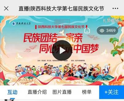 连(lian)续(xu)举办(ban)(ban)七届(jie)(jie)(jie)民(min)(min)(min)族(zu)文(wen)(wen)化(hua)(hua)节(jie)系列活动(dong)。自2014年起,“SUST石(shi)榴云”工作室承办(ban)(ban)了(le)第一(yi)届(jie)(jie)(jie)民(min)(min)(min)族(zu)文(wen)(wen)化(hua)(hua)节(jie),经过7年奋斗,民(min)(min)(min)族(zu)文(wen)(wen)化(hua)(hua)节(jie)的(de)(de)影(ying)响力(li)从小到大(da),从第一(yi)届(jie)(jie)(jie)的(de)(de)“民(min)(min)(min)族(zu)活动(dong)日”扩展(zhan)为(wei)第七届(jie)(jie)(jie)的(de)(de)“民(min)(min)(min)族(zu)活动(dong)月(yue)”连(lian)续(xu)性(xing)活动(dong),目(mu)(mu)前(qian)已(yi)成为(wei)陕西(xi)科技(ji)大(da)学的(de)(de)品牌活动(dong)。在(zai)“民(min)(min)(min)族(zu)文(wen)(wen)化(hua)(hua)月(yue)”期间,工作室聚焦(jiao)宣传引领,强化(hua)(hua)思政教育,线下举办(ban)(ban)民(min)(min)(min)族(zu)团(tuan)(tuan)结(jie)教育纪实展(zhan)、民(min)(min)(min)俗风情展(zhan)和文(wen)(wen)艺汇(hui)演;线上充(chong)分发(fa)挥新媒体矩阵的(de)(de)宣传作用,工作室采用现场直播的(de)(de)方式,在(zai)校网络(luo)思政中(zhong)心(xin)“SUST云科大(da)”视(shi)频号(hao)进(jin)(jin)行(xing)节(jie)目(mu)(mu)直播,在(zai)抖音“经管(guan)有你”进(jin)(jin)行(xing)各(ge)民(min)(min)(min)族(zu)展(zhan)区(qu)直播,让更多没有到达现场的(de)(de)师生也感受各(ge)民(min)(min)(min)族(zu)的(de)(de)文(wen)(wen)化(hua)(hua)魅(mei)力(li)。直播观看(kan)人次共(gong)(gong)计达50000+。同(tong)(tong)时,工作室设计出多种网络(luo)文(wen)(wen)创产(chan)品,让科大(da)学子拥有专属于(yu)民(min)(min)(min)族(zu)文(wen)(wen)化(hua)(hua)节(jie)的(de)(de)回忆(yi)录。如(ru)以(yi)“民(min)(min)(min)族(zu)服饰”为(wei)主(zhu)元(yuan)素(su)(su)的(de)(de)易班熊;以(yi)“56”为(wei)主(zhu)元(yuan)素(su)(su)的(de)(de)口罩;以(yi)“民(min)(min)(min)族(zu)团(tuan)(tuan)结(jie)”“民(min)(min)(min)族(zu)平(ping)等(deng)”“民(min)(min)(min)族(zu)繁荣”“民(min)(min)(min)族(zu)进(jin)(jin)步”“民(min)(min)(min)族(zu)互(hu)助”为(wei)主(zhu)元(yuan)素(su)(su)的(de)(de)激(ji)励(li)章(zhang);以(yi)“民(min)(min)(min)族(zu)一(yi)家亲(qin)”为(wei)主(zhu)元(yuan)素(su)(su)的(de)(de)折(zhe)扇、手环、手提(ti)袋、明信片、民(min)(min)(min)族(zu)贴(tie)纸(zhi)等(deng)。线上线下同(tong)(tong)频共(gong)(gong)振,共(gong)(gong)同(tong)(tong)营(ying)造民(min)(min)(min)族(zu)团(tuan)(tuan)结(jie)一(yi)家亲(qin),同(tong)(tong)心(xin)共(gong)(gong)筑中(zhong)国(guo)梦”的(de)(de)和谐氛围,共(gong)(gong)育民(min)(min)(min)族(zu)团(tuan)(tuan)结(jie)之(zhi)花,共(gong)(gong)享繁荣发(fa)展(zhan)之(zhi)果。