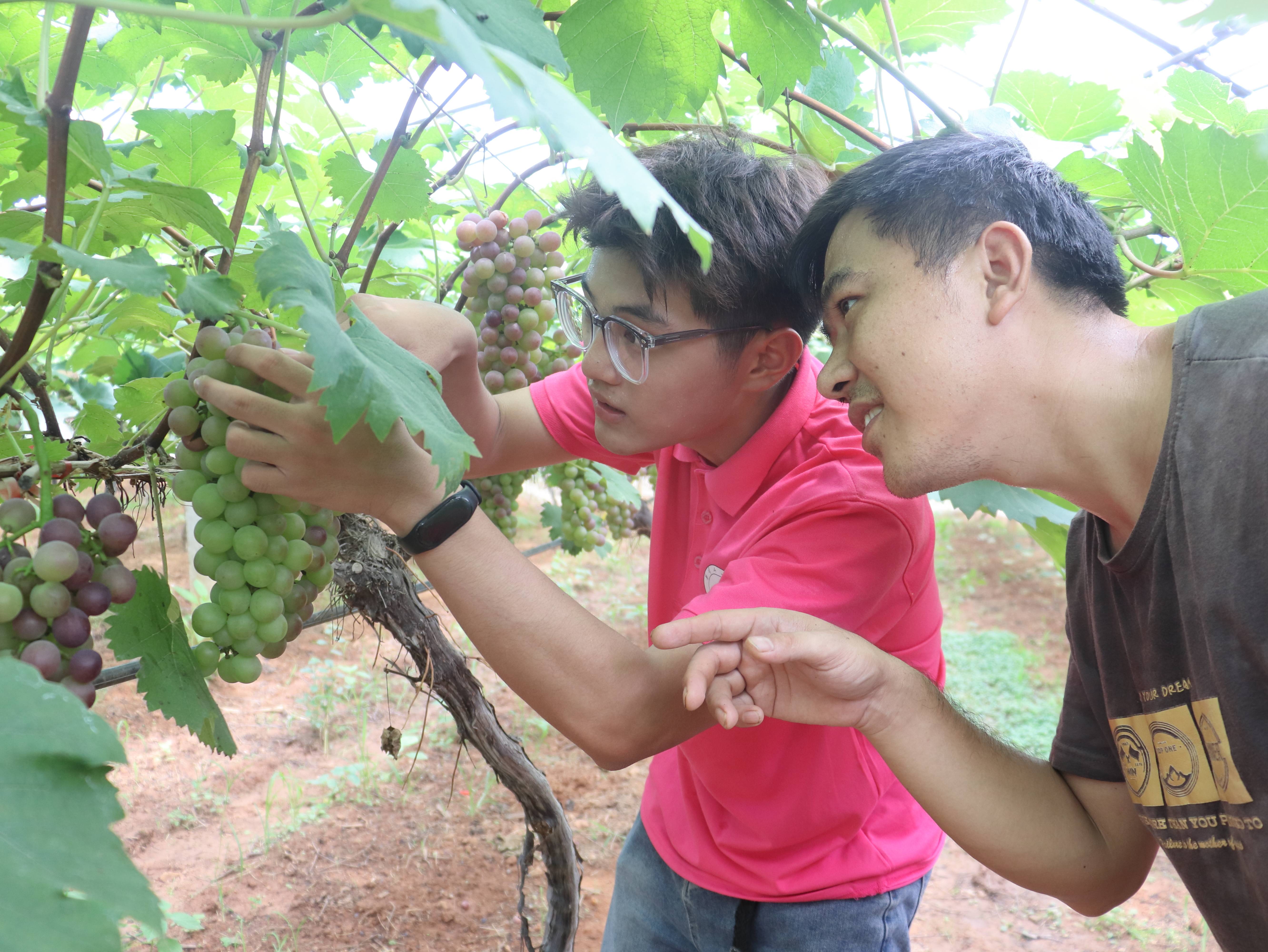 在(zai)吉水县(xian)文峰镇玉山(shan)村,实(shi)(shi)践(jian)团成(cheng)员们与返乡创业大学生、农村企业家邱常旺(wang)就深植(zhi)人民(min)情怀、为民(min)谋致(zhi)富增收之(zhi)路以及如何做服(fu)务乡村振(zhen)兴(xing)的(de)(de)实(shi)(shi)干青年进行交流;在(zai)他(ta)的(de)(de)葡萄基地,实(shi)(shi)践(jian)团了解到了葡萄种植(zhi)的(de)(de)农业知(zhi)识、基地的(de)(de)运营(ying)模式,并同基地的(de)(de)工人们一起(qi)修剪葡萄枝(zhi)头,体会劳动的(de)(de)不易。