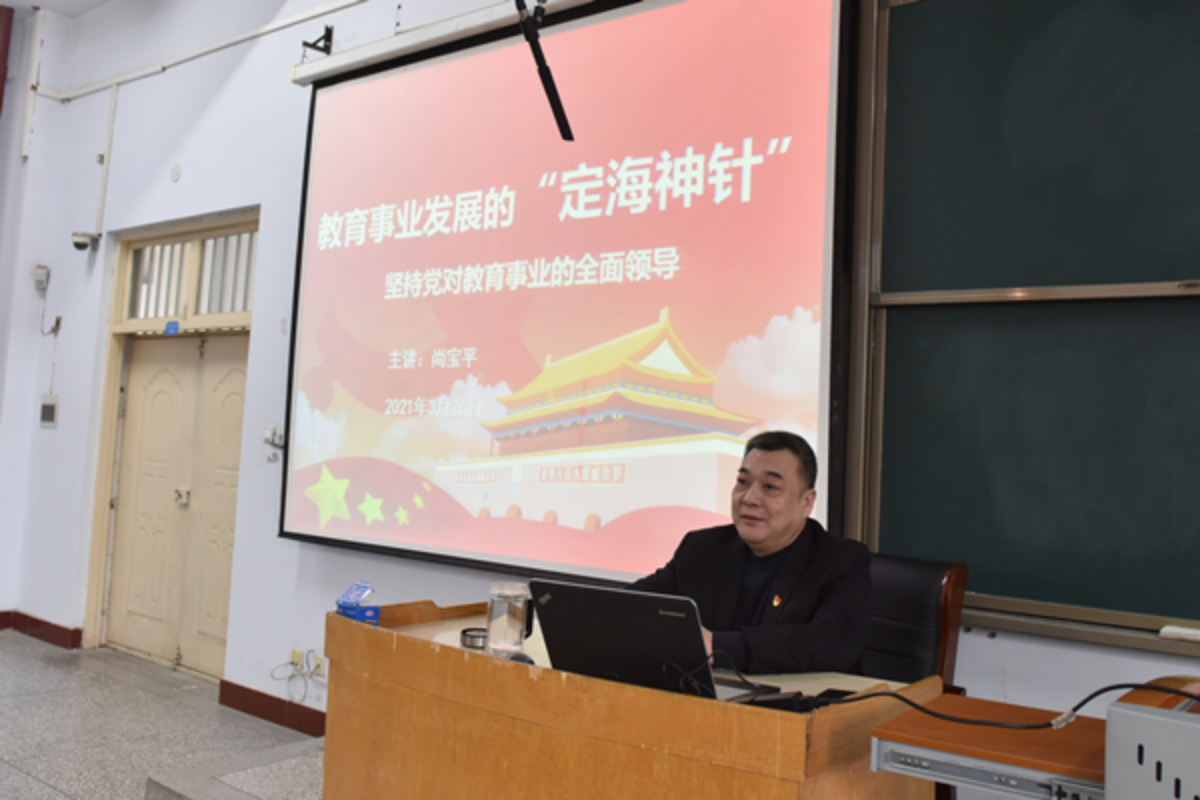尚宝平结合教(jiao)(jiao)育(yu)(yu)(yu)发(fa)(fa)(fa)展(zhan)(zhan)实际,详细(xi)讲解(jie)了为什(shen)么坚持(chi)和加(jia)强党(dang)(dang)对教(jiao)(jiao)育(yu)(yu)(yu)工(gong)作(zuo)的全面领导,回顾(gu)了习近平总书记(ji)(ji)对教(jiao)(jiao)育(yu)(yu)(yu)的关心和谋划历(li)程(cheng),习近平总书记(ji)(ji)从党(dang)(dang)和国家事业(ye)(ye)发(fa)(fa)(fa)展(zhan)(zhan)全局的高度就我国教(jiao)(jiao)育(yu)(yu)(yu)发(fa)(fa)(fa)展(zhan)(zhan)改革重(zhong)(zhong)大(da)问(wen)题提出的一系列新(xin)理念(nian)新(xin)思(si)想新(xin)战略,是习近平新(xin)时代中国特色(se)社(she)会主义思(si)想的重(zhong)(zhong)要(yao)内容(rong),为新(xin)时代我国教(jiao)(jiao)育(yu)(yu)(yu)事业(ye)(ye)发(fa)(fa)(fa)展(zhan)(zhan)提供了科学指导。