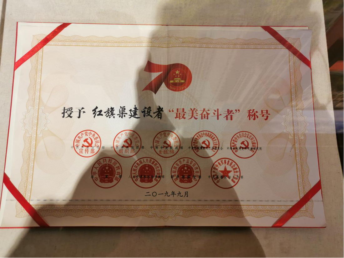 2019年(nian)9月红旗渠(qu)建设者被授(shou)予“最(zui)美奋斗者”称号
