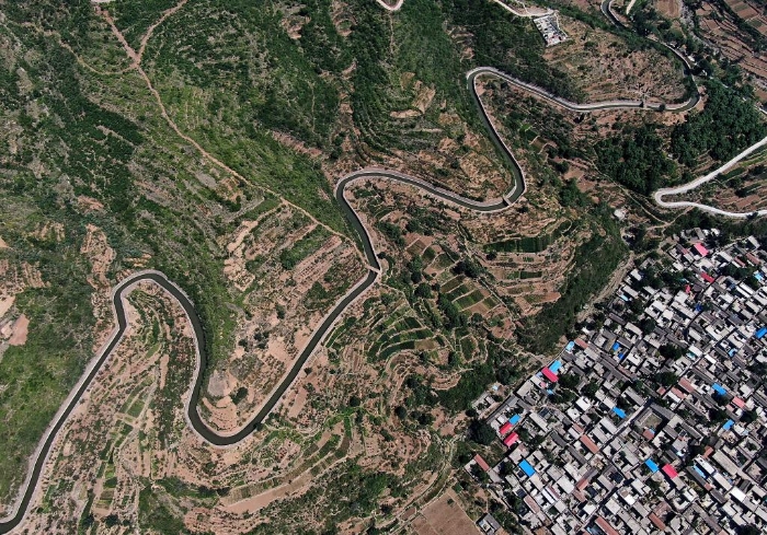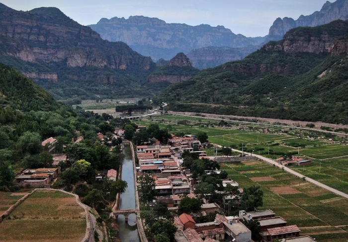 红旗渠总干渠从(cong)村庄穿(chuan)过(2019年7月(yue)4日无人(ren)机拍摄)。新华社(she)记者 李安(an) 摄
