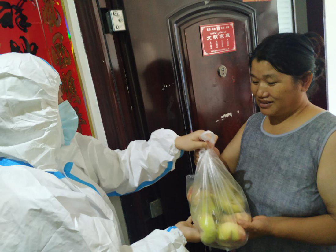 图(tu)为实践队员给小(xiao)区(qu)居(ju)民送(song)居(ju)民所需物资