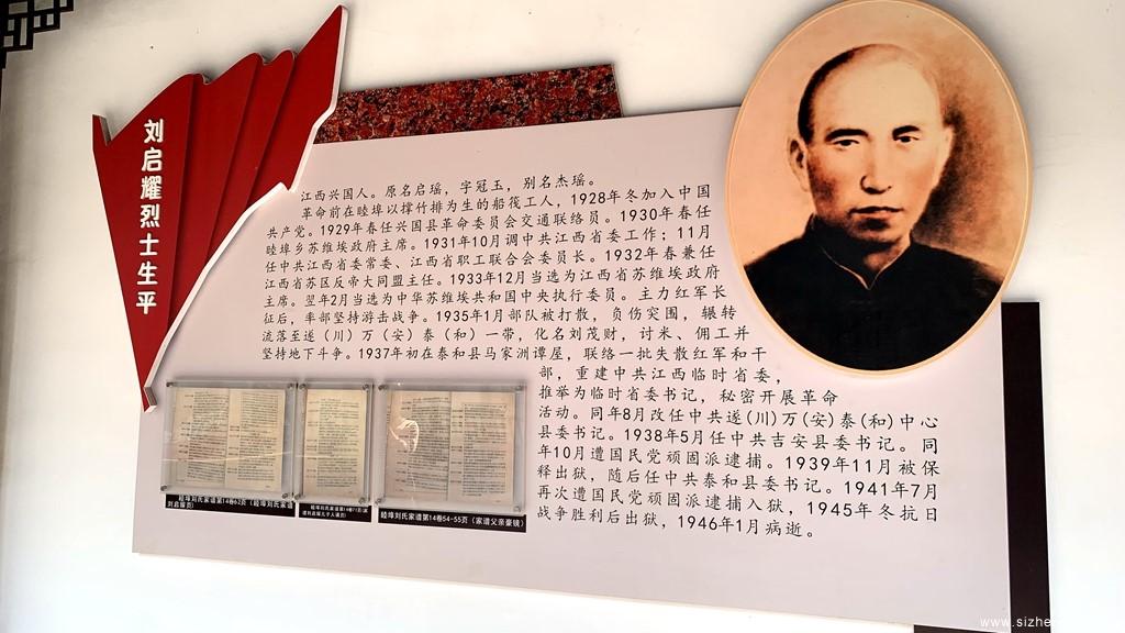 刘启耀(yao)(1899~1946),男,江(jiang)西(xi)省(sheng)(sheng)(sheng)兴(xing)国县(xian)龙口乡人。1928年加入中(zhong)国共(gong)(gong)(gong)产党(dang)(dang),1930年后担任(ren)乡苏(su)(su)政府主席、中(zhong)共(gong)(gong)(gong)江(jiang)西(xi)省(sheng)(sheng)(sheng)委(wei)常委(wei)、江(jiang)西(xi)省(sheng)(sheng)(sheng)职工联合会委(wei)员长、省(sheng)(sheng)(sheng)反帝大同(tong)盟主任(ren)、江(jiang)西(xi)省(sheng)(sheng)(sheng)苏(su)(su)主席、苏(su)(su)维埃中(zhong)央执行委(wei)员。红(hong)军(jun)长征后,率(lv)部(bu)坚持游击斗争(zheng),突(tu)围(wei)中(zhong)他负伤与组织失散,讨米度(du)日(ri),不动用分毫党(dang)(dang)的(de)经(jing)费(fei)。1937年初,他重建中(zhong)共(gong)(gong)(gong)江(jiang)西(xi)临(lin)时省(sheng)(sheng)(sheng)委(wei),推(tui)选(xuan)为书(shu)记(ji)(ji)。后担任(ren)中(zhong)共(gong)(gong)(gong)遂万泰中(zhong)心(xin)县(xian)委(wei)书(shu)记(ji)(ji)、中(zhong)共(gong)(gong)(gong)吉安(an)县(xian)委(wei)书(shu)记(ji)(ji)、中(zhong)共(gong)(gong)(gong)泰和县(xian)委(wei)书(shu)记(ji)(ji)等职,多次被捕入狱。