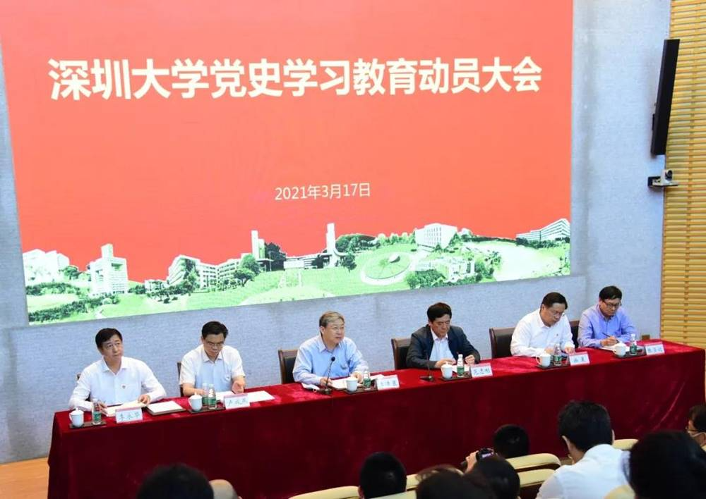 3月17日,深圳(zhen)大(da)(da)学(xue)(xue)(xue)(xue)党(dang)史学(xue)(xue)(xue)(xue)习(xi)教(jiao)育(yu)动(dong)员大(da)(da)会(hui)(hui)召开(kai),认真学(xue)(xue)(xue)(xue)习(xi)贯(guan)彻习(xi)近平总书记在党(dang)史学(xue)(xue)(xue)(xue)习(xi)教(jiao)育(yu)动(dong)员大(da)(da)会(hui)(hui)上的(de)重要讲话精(jing)神和《中(zhong)共(gong)中(zhong)央关(guan)于(yu)(yu)在全(quan)党(dang)开(kai)展党(dang)史学(xue)(xue)(xue)(xue)习(xi)教(jiao)育(yu)的(de)通知(zhi)》精(jing)神,传(chuan)达省委(wei)、市委(wei)关(guan)于(yu)(yu)开(kai)展党(dang)史学(xue)(xue)(xue)(xue)习(xi)教(jiao)育(yu)的(de)有关(guan)文件精(jing)神,对全(quan)校党(dang)史学(xue)(xue)(xue)(xue)习(xi)教(jiao)育(yu)进行全(quan)面动(dong)员部署(shu)。学(xue)(xue)(xue)(xue)校党(dang)委(wei)书记、校长(zhang)李清泉主持大(da)(da)会(hui)(hui)并讲话,党(dang)委(wei)副(fu)书记范志(zhi)刚,党(dang)委(wei)副(fu)书记、纪委(wei)书记卢(lu)成燕,副(fu)校长(zhang)徐晨(chen)、李永华、张学(xue)(xue)(xue)(xue)记出(chu)席(xi)大(da)(da)会(hui)(hui)。