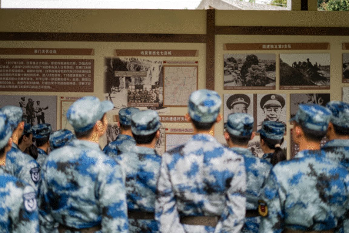 在解(jie)说(shuo)员(yuan)的(de)带领(ling)(ling)下,我们(men)(men)参观了军(jun)史长(zhang)廊。女兵(bing)解(jie)说(shuo)员(yuan)分(fen)六个部(bu)分(fen)依次(ci)从红(hong)(hong)军(jun)长(zhang)征(zheng)时(shi)期(qi)(qi)、全面抗(kang)战(zhan)时(shi)期(qi)(qi)、解(jie)放(fang)战(zhan)争时(shi)期(qi)(qi)、新(xin)中国成立、改革开(kai)放(fang)及(ji)新(xin)时(shi)代发展(zhan)(zhan)讲解(jie)了人(ren)民(min)军(jun)队在党的(de)领(ling)(ling)导(dao)下由无到有(you),由弱到强的(de)发展(zhan)(zhan)历(li)程(cheng)。强军(jun)路(lu)上,一代代革命战(zhan)士传承(cheng)红(hong)(hong)色(se)基(ji)因(yin),挥洒(sa)汗水砥砺奋进,用(yong)忠诚护卫(wei)责任(ren),逐梦征(zheng)程(cheng),苦(ku)练打赢本(ben)领(ling)(ling),无所(suo)畏惧勇攀高峰,用(yong)使(shi)命指(zhi)引前(qian)行。历(li)史记录下的(de)一段段故事感(gan)人(ren)至(zhi)深,一次(ci)次(ci)战(zhan)斗刻骨铭心,一座座丰碑令让敬仰,参观的(de)同学(xue)们(men)(men)紧跟着讲解(jie)员(yuan)的(de)节奏,认真聆听,深刻领(ling)(ling)悟着英(ying)雄的(de)先辈们(men)(men)留下的(de)宝贵(gui)精神财富(fu)。