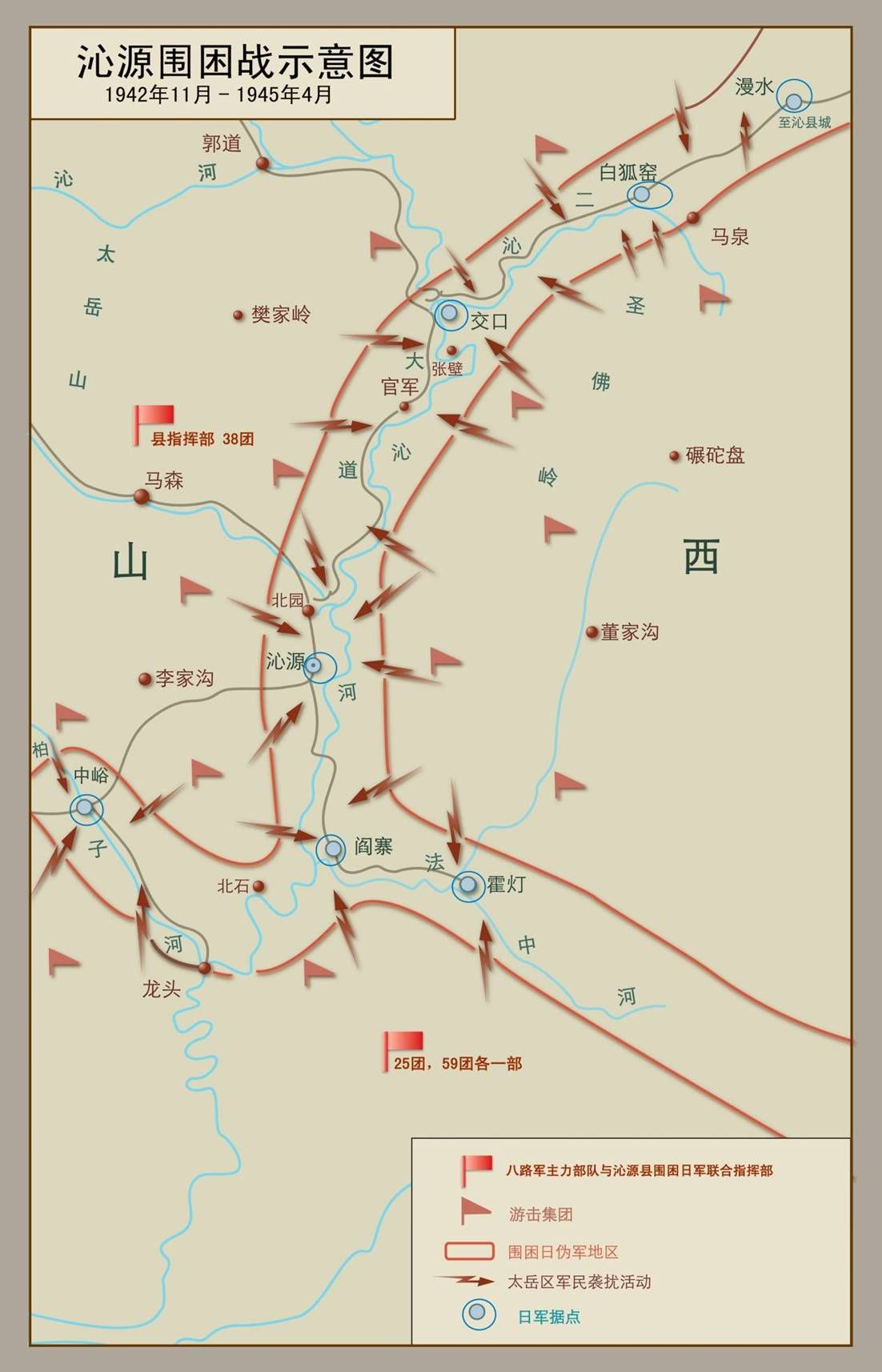 沁源县位于太岳山下,抗战时是晋冀鲁豫边区太岳抗日根据地的腹地。1942年10月,日军对岳北地区发动冬季“扫荡”后,为了达到摧毁抗日根据地的目的,采取“腹内开花”、“长期驻剿”的鬼花招,即在大部分日军撤出根据地之后,留置第六十九师团第六十旅团的伊藤大队和第五十九旅团第八十四大队的小夺中队于沁源,在根据地内建立据点,进行守备,从据点出动进行分区清剿,并插上了“山岳剿共实验区”的牌子。妄图在抗日根据地的腹心区长期驻扎,进行特务活动,诱骗群众“维持”,把太岳抗日根据地变成其所谓的“治安区”。
