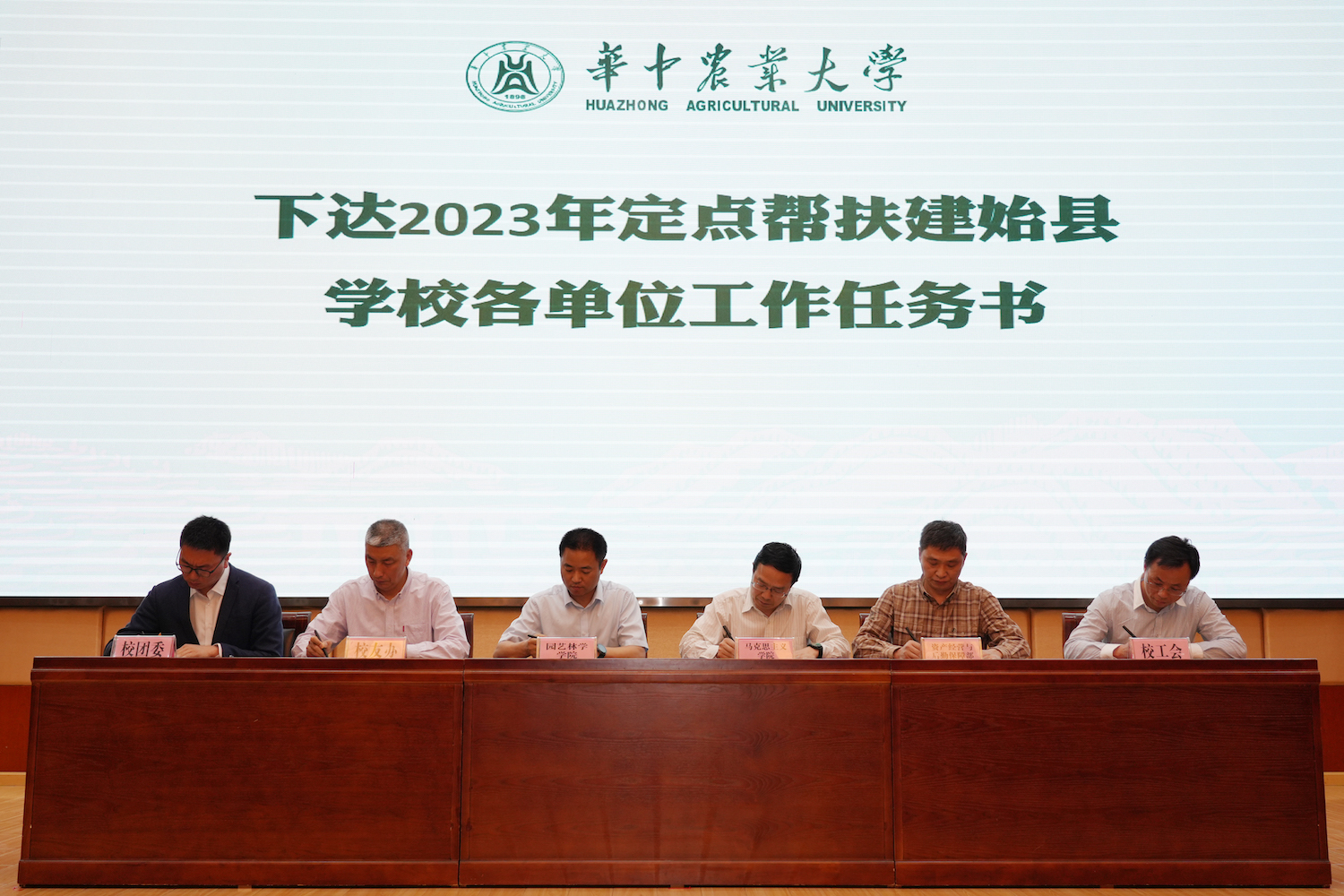 5月10日下午,华中农(nong)业(ye)大学(xue)(xue)在国际学(xue)(xue)术(shu)交流中心一(yi)楼报告厅(ting)召开2023年乡村(cun)振兴荆(jing)楚行和定点帮扶建(jian)始县(xian)工作推进会(hui)。中国建(jian)设银行湖北(bei)省分行、荆(jing)门市、建(jian)始县(xian)、浠(xi)水县(xian)、秭归县(xian)、劲牌有限(xian)公(gong)司(si)、湖北(bei)农(nong)发(fa)种(zhong)业(ye)集团有限(xian)公(gong)司(si)、湖北(bei)万湾湖胖(pang)头鱼养殖有限(xian)公(gong)司(si)、阳新县(xian)百容水产良种(zhong)有限(xian)公(gong)司(si)和我校各单(dan)位相关负责(ze)同志、企(qi)业(ye)代表、专家教授参加会(hui)议(yi)。校长(zhang)李(li)召虎出(chu)席会(hui)议(yi)并讲话,校党(dang)委常(chang)委、校办主任、宣传部长(zhang)张(zhang)金洲,校党(dang)委常(chang)委、组织部长(zhang)、统战部长(zhang)李(li)向东参加会(hui)议(yi)。党(dang)委副书(shu)记、副校长(zhang)姚江林主持会(hui)议(yi)。