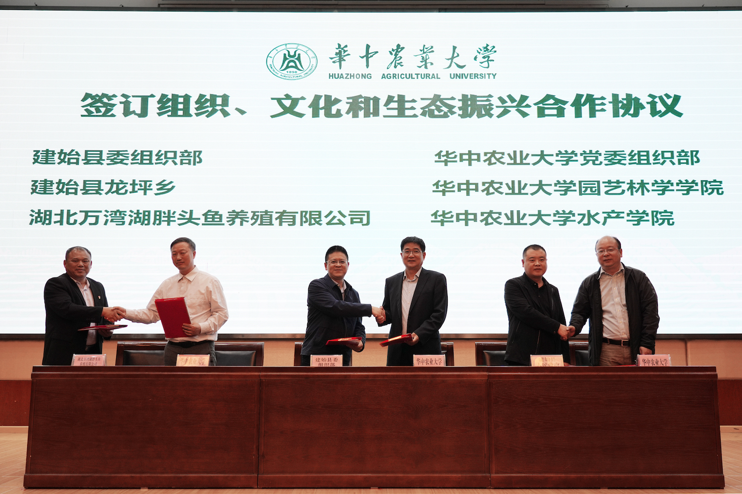 会上,校(xiao)(xiao)友工(gong)(gong)作(zuo)(zuo)办(ban)公室、资(zi)产(chan)经营与后勤保障部(bu)、校(xiao)(xiao)工(gong)(gong)会、校(xiao)(xiao)团委(wei)、园艺林(lin)(lin)学(xue)学(xue)院、马克思(si)主义学(xue)院等单位负责同(tong)志作(zuo)(zuo)为(wei)代表,签署了2023 年定点(dian)帮扶建(jian)始(shi)县(xian)(xian)工(gong)(gong)作(zuo)(zuo)任务书。围绕(rao)五(wu)大振(zhen)兴(xing),劲牌(pai)有(you)限(xian)(xian)公司、湖(hu)北农发种业集(ji)团有(you)限(xian)(xian)公司、浠水县(xian)(xian)人民政府、建(jian)始(shi)县(xian)(xian)委(wei)组织部(bu)、建(jian)始(shi)县(xian)(xian)龙坪乡(xiang)、湖(hu)北万(wan)湾湖(hu)胖头鱼养殖有(you)限(xian)(xian)公司分(fen)别和我(wo)校(xiao)(xiao)签约了合作(zuo)(zuo)项目协议(yi),协议(yi)总金(jin)额达1800余万(wan)元。中国建(jian)设(she)银行湖(hu)北省分(fen)行副行长(zhang)徐(xu)宏和我(wo)校(xiao)(xiao)党(dang)委(wei)副书记、副校(xiao)(xiao)长(zhang)姚(yao)江(jiang)林(lin)(lin)共(gong)同(tong)为(wei)中国建(jian)设(she)银行湖(hu)北省分(fen)行-华中农业大学(xue)“乡(xiang)村振(zhen)兴(xing)人才培训基地”揭牌(pai)。