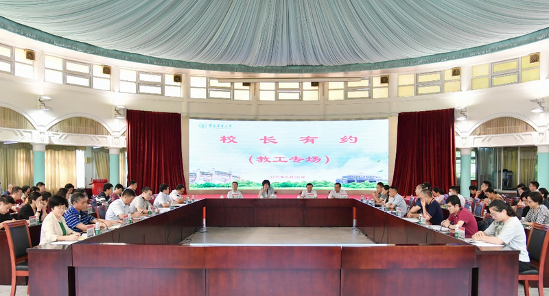 为扎实开展好主题教育,以高质量调查研究推动学校高质量发展,6月26日上午,华南农业大学在红满堂举行第五期“校长有约”教工专场活动。校长刘雅红,校党委副书记邓国安,副校长温小波、邓诣群及学校各学院、相关部门负责人与教职工代表齐聚一堂,就学校发展所需、教工关注的问题进行面对面座谈交流。