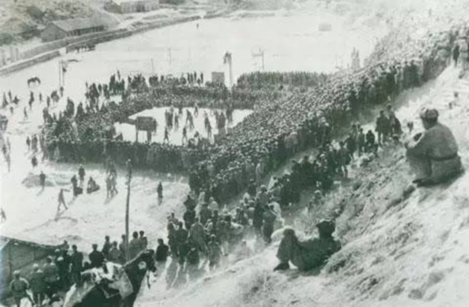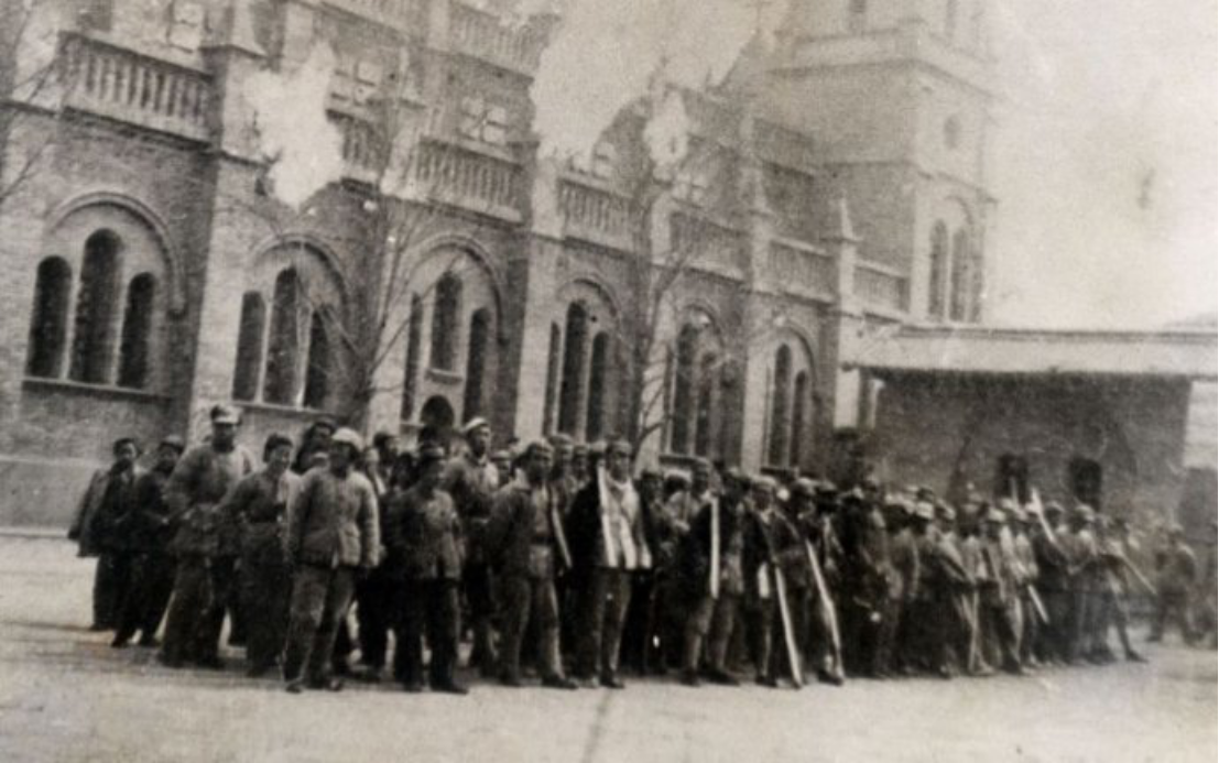 鲁艺师生(sheng)们在鲁艺教学楼前的(de)合影(ying)