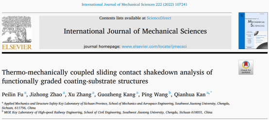 近日,阚前华教授(shou)团队在功能梯度材(cai)料的热力耦合接触安(an)定(ding)研(yan)究上取得重要进展(zhan),相关(guan)工作(zuo)以(yi)“Thermo-mechanically coupled sliding contact shakedown analysis of functionally graded coating-substrate structures”为题发(fa)表(biao)在机械科学领域顶级期刊《International Journal of Mechanical Sciences》(中科院一区TOP,IF:5.329)。博(bo)士研(yan)究生伏(fu)培林(lin)为第(di)一作(zuo)者,阚前华教授(shou)为通(tong)讯作(zuo)者。