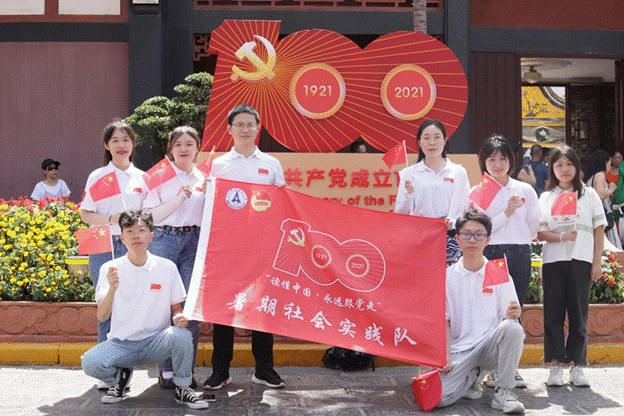 2021年7月13日,“一薪一义”暑期社会实践队毛泽东旧址前合影留念